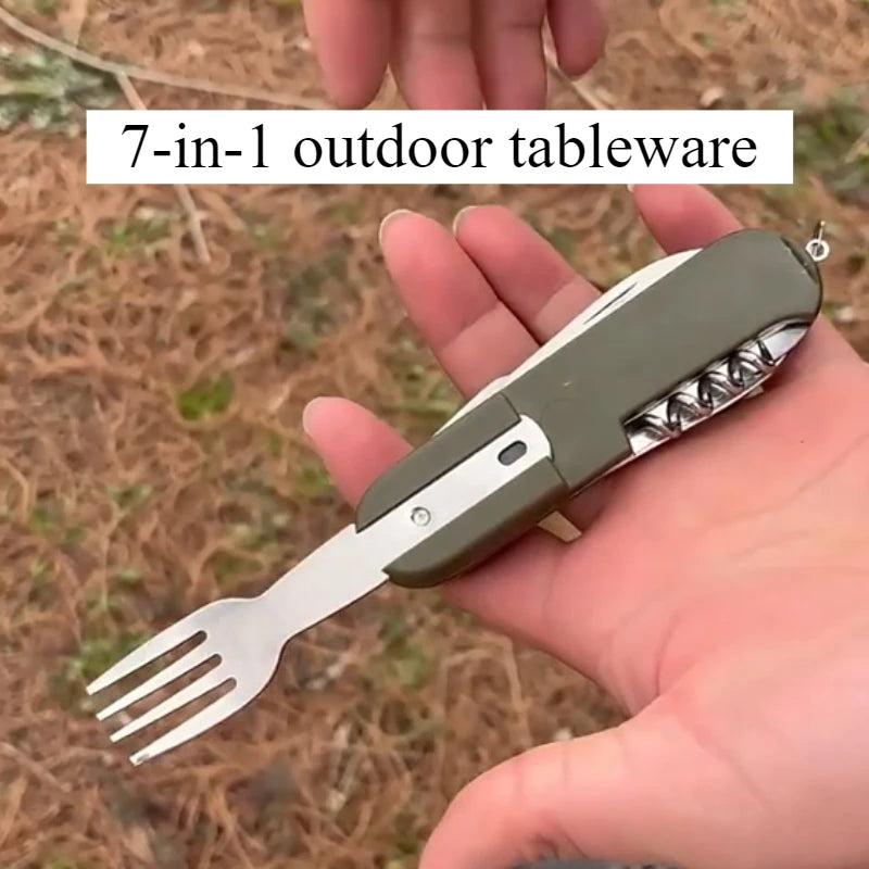 1pc 7-in-1 Multifunctional Outdoor Utensils Stainless Steel Portable Utensils Picnic Camping Hiking Outdoor Gadgets