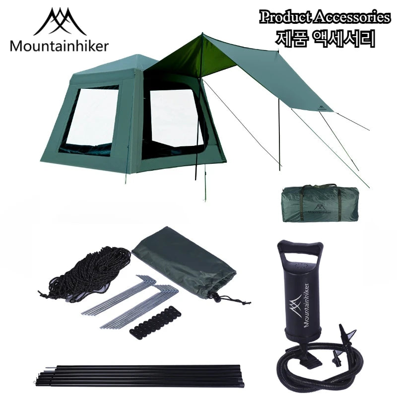 MOUNTAINHIKER Cottage Inflatable Tent Large Space Camping Tent 3-4 Person Quick Setup With Canopy for Outdoor Family Adventures
