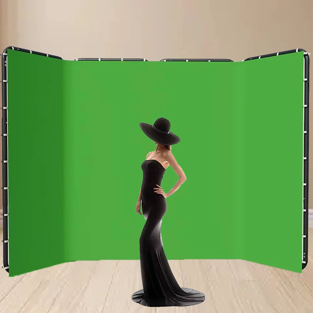 2.4x3M Background Frame With Photography Green Curtain Folded For Tiktok Live Photo Studio Kit Chromakey Green Screen Frame