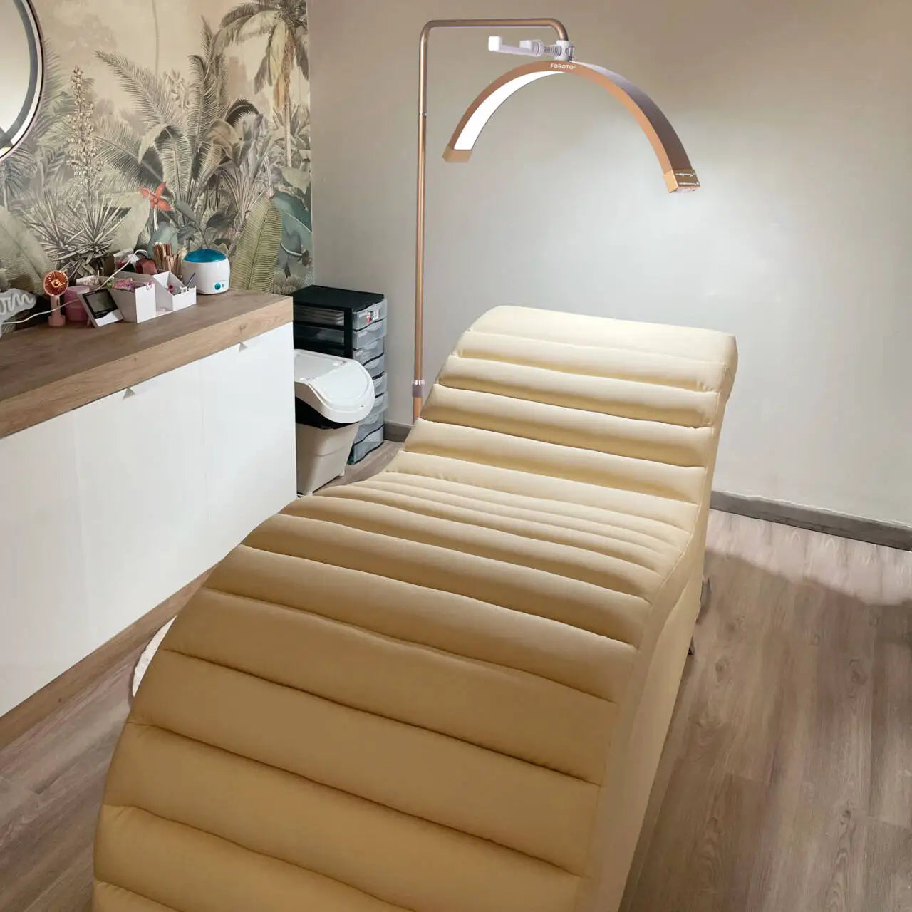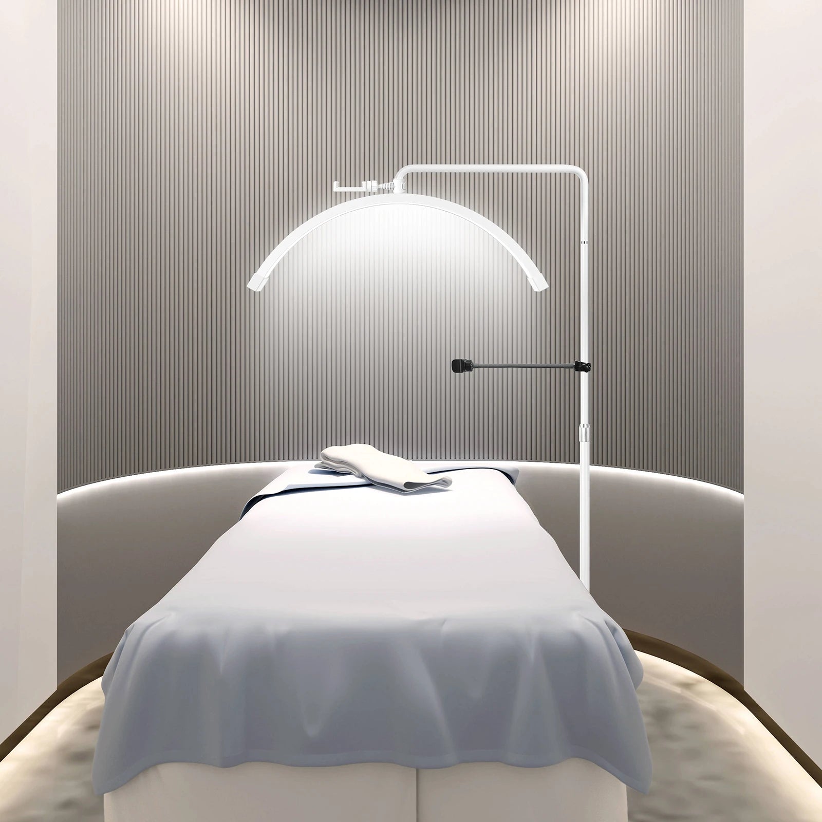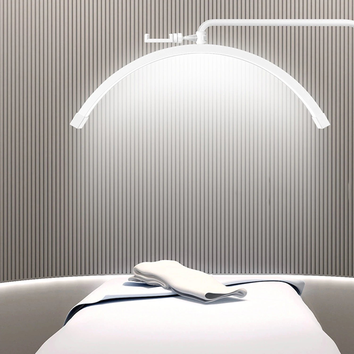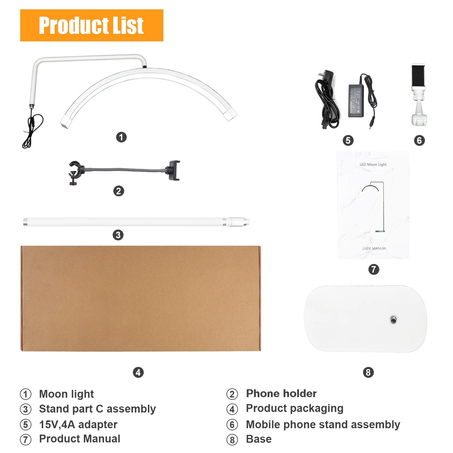 【Half-moon Light】fosoto special half-moon shape design with floor stand, It will make your work without any shadow obstruction.with 320pcs high-quality lamp beads, 45W high power and 95+ high color rendering.suitable for lash,eyelash,tattoo,desktop vlog, beauty salon live streaming, beauty project,nail enhancement etc.