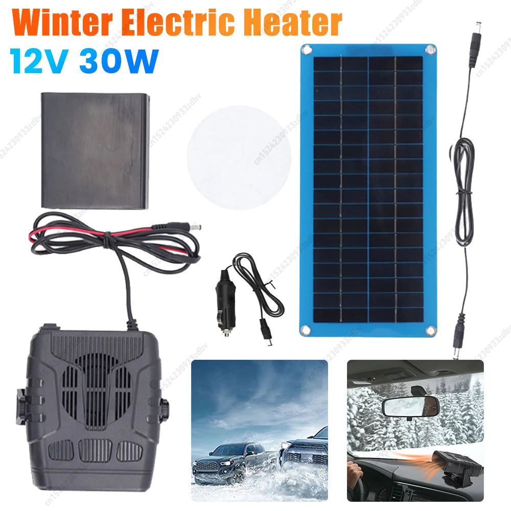DC 12V 30W Solar Panel Winter Electric Heater Drying and Heating DC 12V 30W Solar Panel Powered Windshield Defogger Window Defroster Auto Air Drying Device Protable Outdoor Camping Car Pets WarmerFeature: 1. Solar-Powered Efficiency: The Winter Electric Heater converts sunlight into electricity, providing efficient heating without an external power source. This innovative solution uses renewable energy to keep you warm during your winter travels. 2. Frost and Snow Solution: Designed for winter use, the Windshield Defogger Window Defroster generates warm air to help clear frost and snow from your windshield. It reduces the need for manual scraping, enhancing driving safety and comfort in cold weather. 3. Compact and Portable: The Windshield Deicer is small and lightweight, making it easy to carry and store in your vehicle. Bring warmth with you wherever your journey leads, ensuring comfort in all winter driving conditions. 4. Built-In Battery Storage: The Heating Fan includes a battery box to store excess solar energy for extended use. Once fully charged, it can operate independently for 2-3 days, offering reliability during long trips or low sunlight conditions. (Note: Batteries not included; requires up to three 18650 rechargeable lithium batteries.) 5. Versatile Winter Companion: Ideal for commuters and outdoor enthusiasts, the Car Warmer Heater is designed for situations requiring quick air drying. It aims to make winter driving easier and more comfortable for a wide range of users.