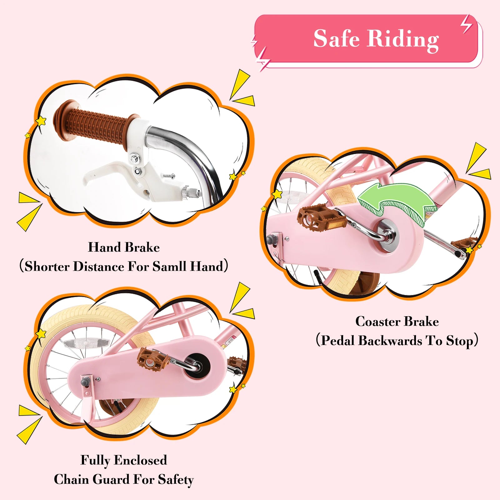 【Choose the Right Size】 12-inch bike is suitable for 2-4 years old (32-41 inch) girls; a 14-inch bike is suitable for 3-5 years old (36 - 47 inch) girls; a 16-inch bike is suitable for 4-7 years (41-53 inch) girls.