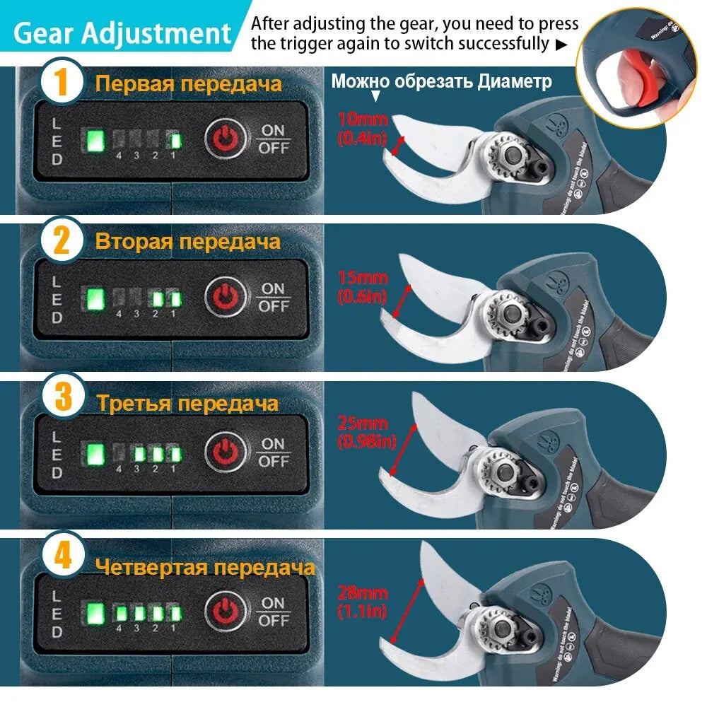 • Electric Power Source :With its electric power source, this pruner provides easy and convenient use, eliminating the need for gas or oil fuel.