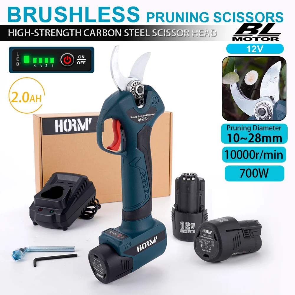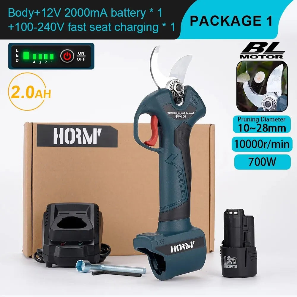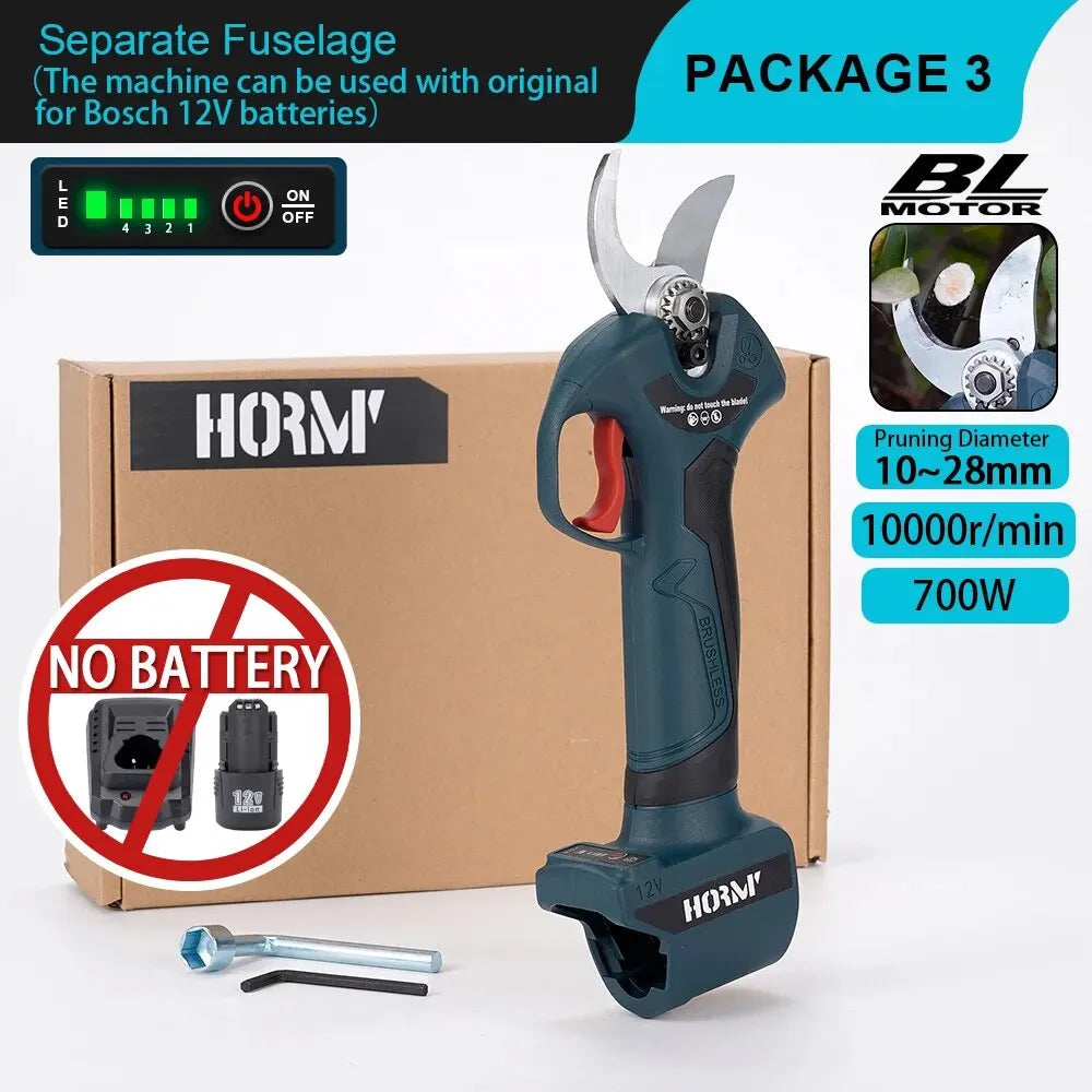 Hormy Gardens Brushless Electric Cordless Pruner: Efficient 12V BOSCH Battery-Powered Shears for Fruit Trees, Orchards, and Shrubs