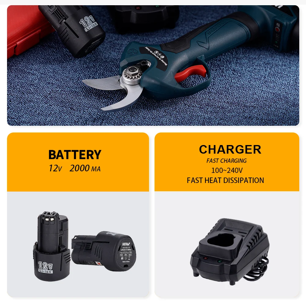 【 1pc 2.0ah battery】 1 x brushless Lithium electric pruners 、 1 x 2.0ah battery 、 1 x 1.5a charger (he original for Bosch 12V battery can be charged)