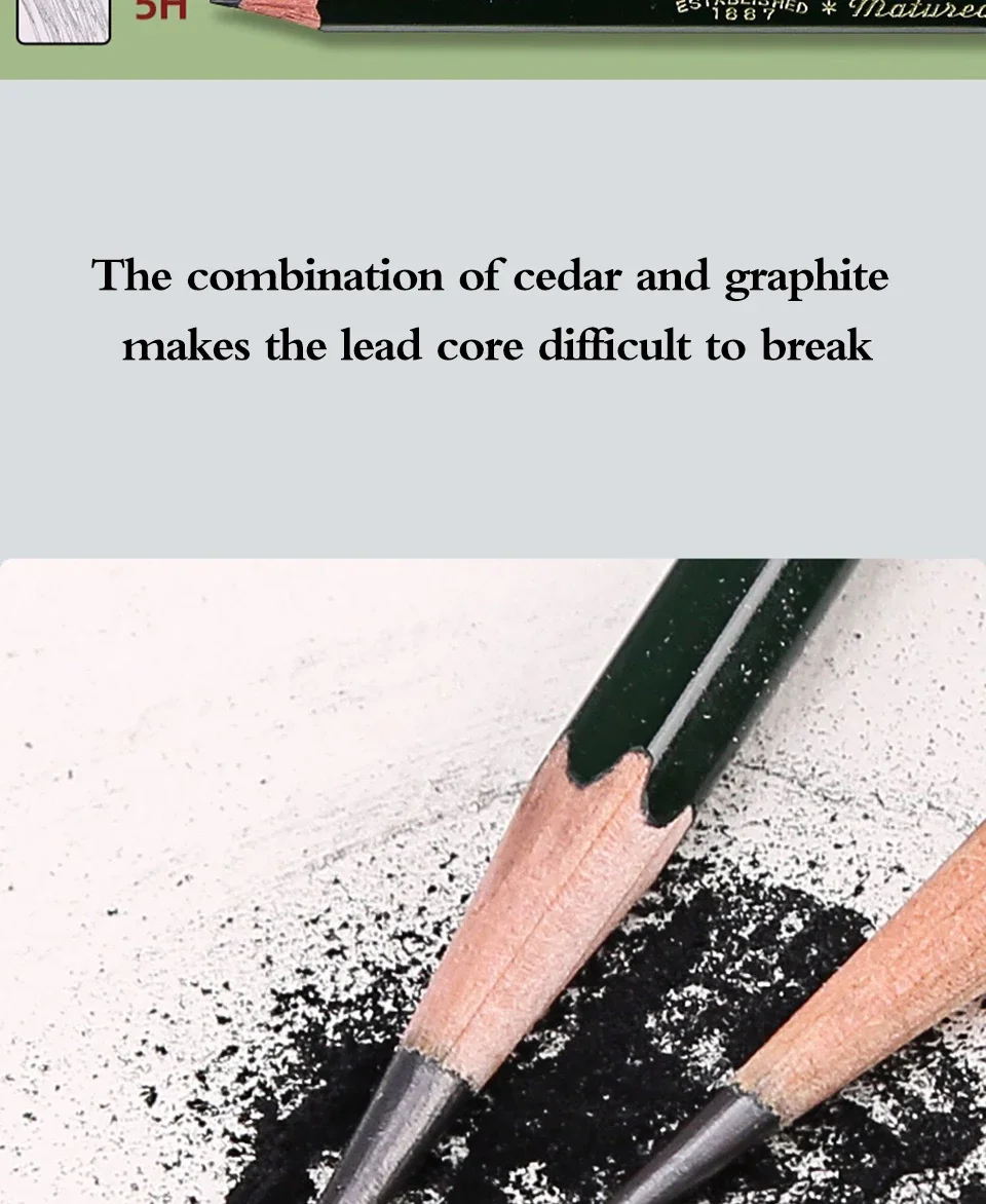 🎨 H to 10B, F, 20 kinds of specifications to meet various drawing needs. Model number on the end for quick identification. Different hardness can be easily stacked for drawing, and it is not easy to reflect the dark color.