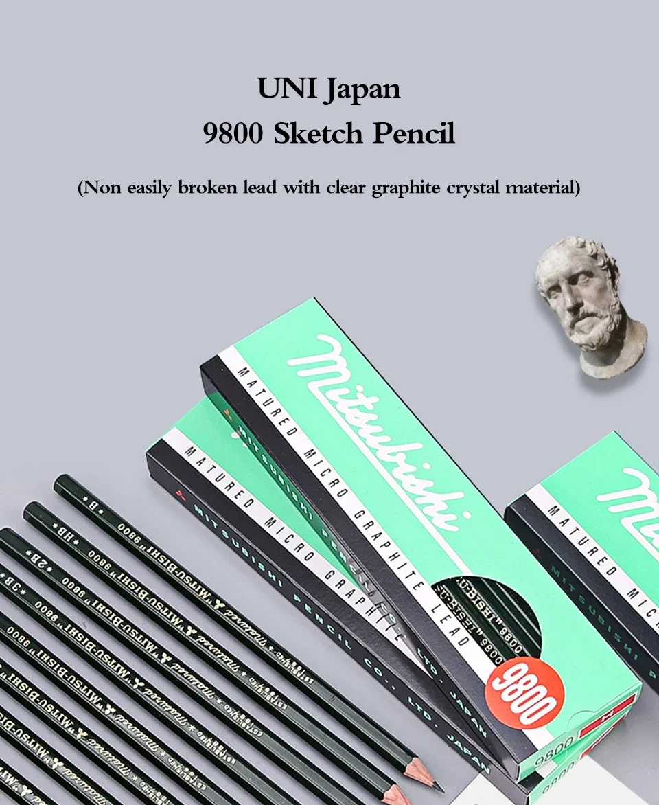 Uni Sketch Graphite Pencil Set – Smooth Drawing Tools from Japan, Artist Accessories for Shading & Sketching