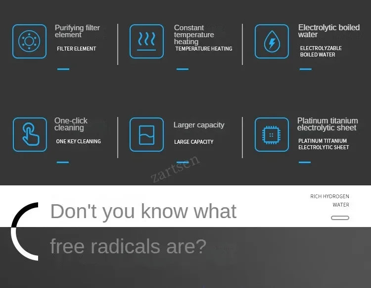 Upgrade your hydration with this 2-liter Electric Hydrogen-Rich Water Kettle. Operating on 100–240V, this powerful water ionizer infuses your water with molecular hydrogen, known for its potential antioxidant and anti-inflammatory benefits. With an integrated water filtration system, it removes impurities while generating clean, healthy, and refreshing hydrogen water. Ideal for home or office use, this hydrogen water machine supports your wellness journey with every sip.