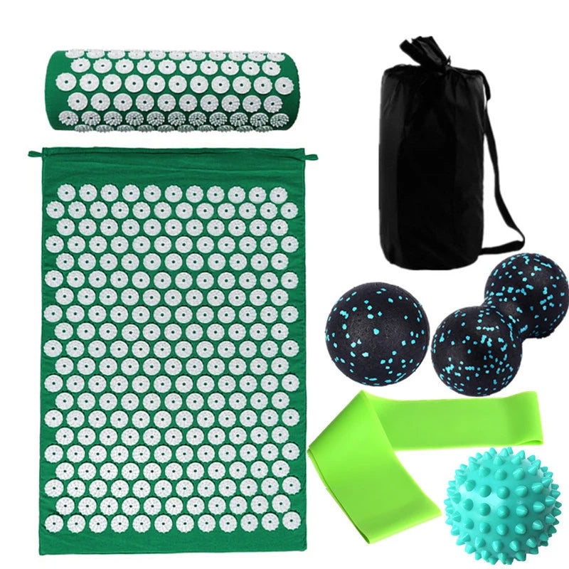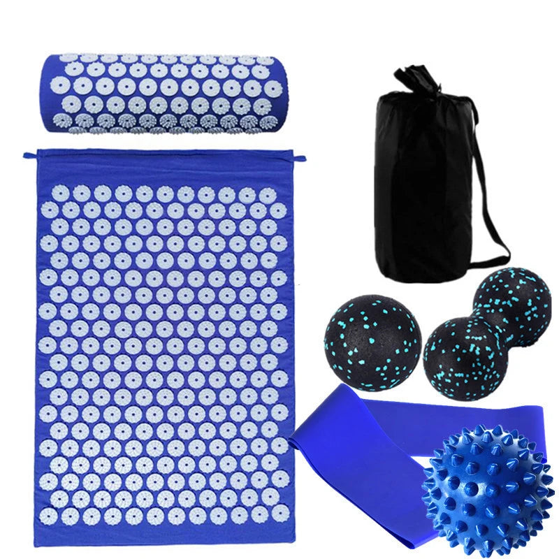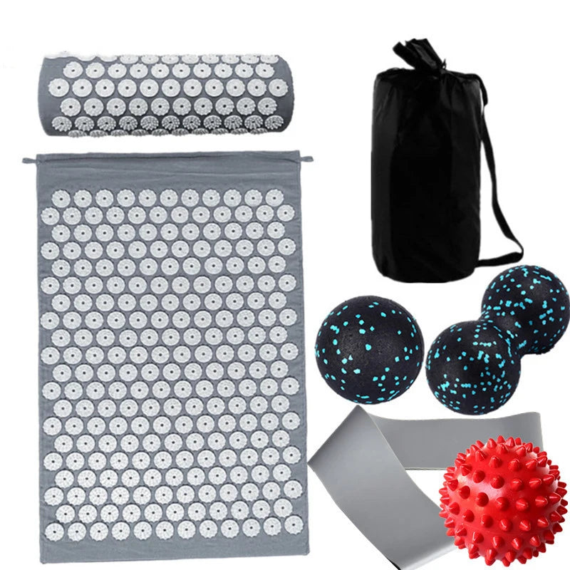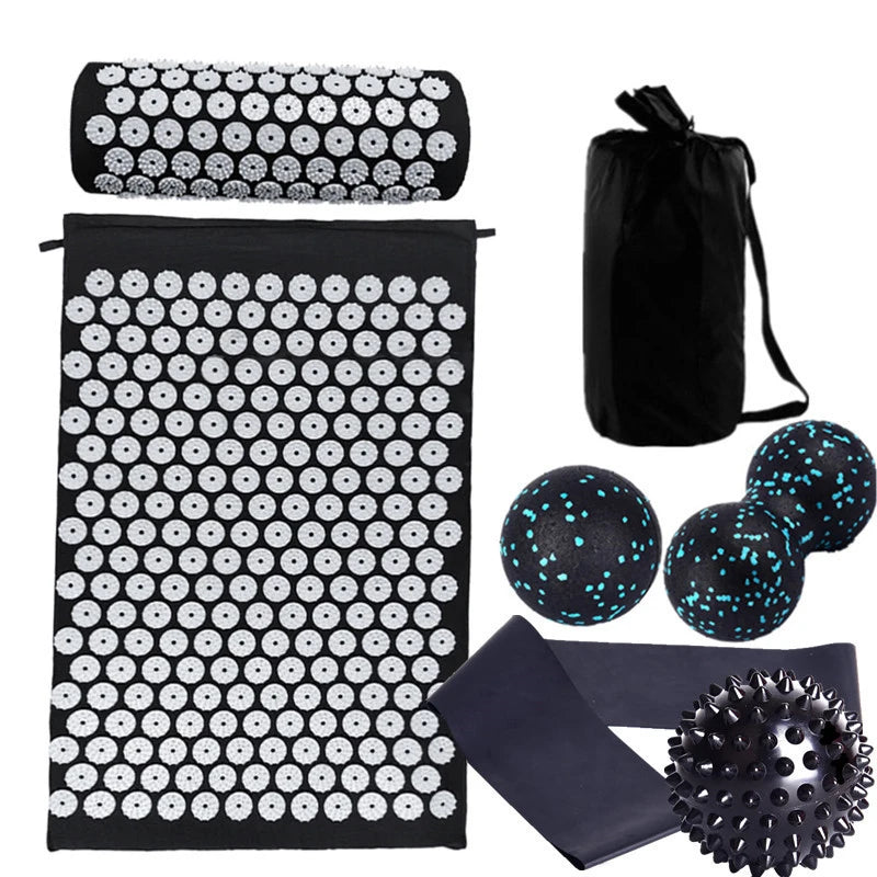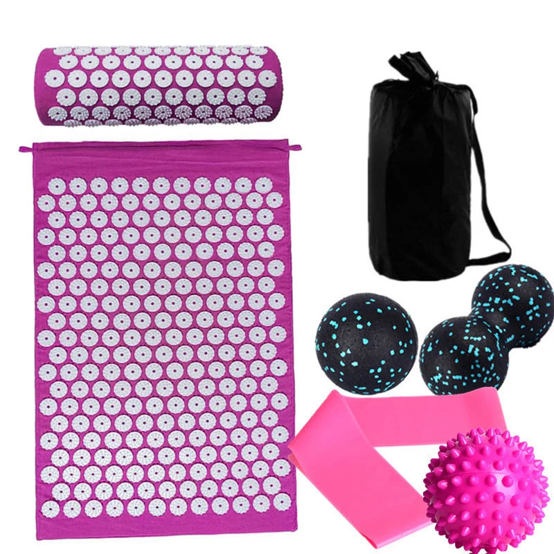 Unwind and recharge with this 7-piece acupressure mat and pillow set—your at-home solution for stress relief, back pain, and muscle tension. Designed to stimulate pressure points through safe, non-invasive acupuncture-style contact, it helps boost circulation, ease fatigue, and enhance recovery. Perfect for yoga, post-workout recovery, or daily relaxation, this complete set includes a mat, pillow, and massage tools to target your whole body.