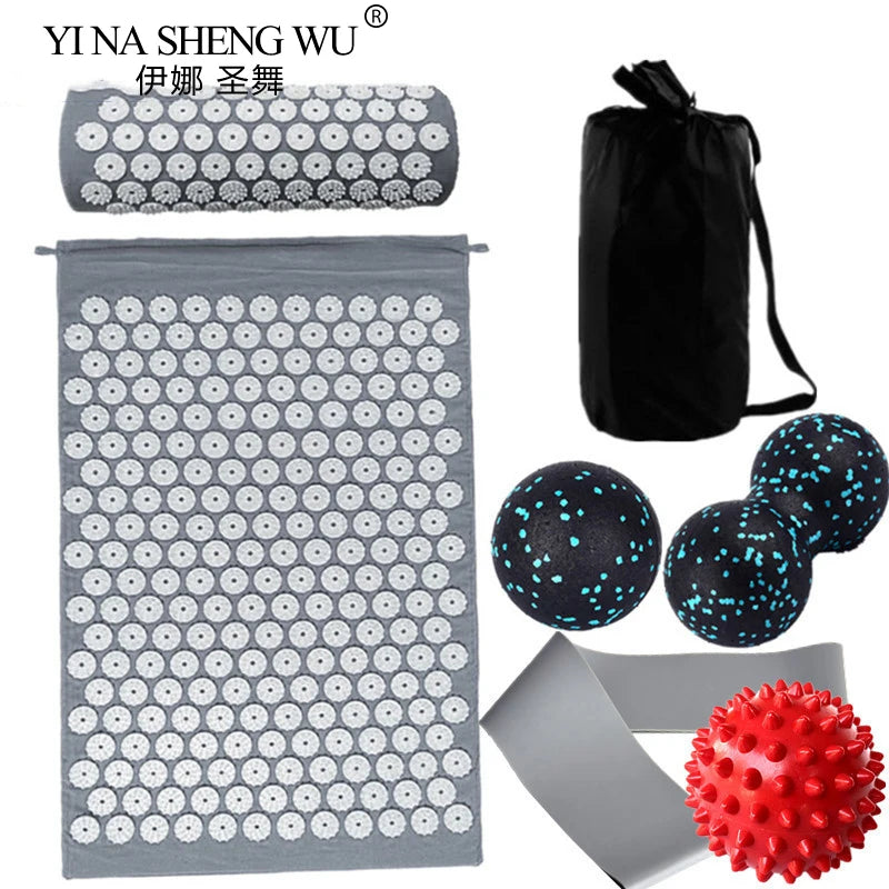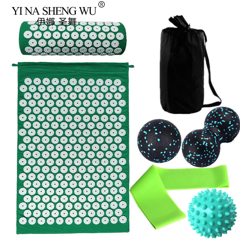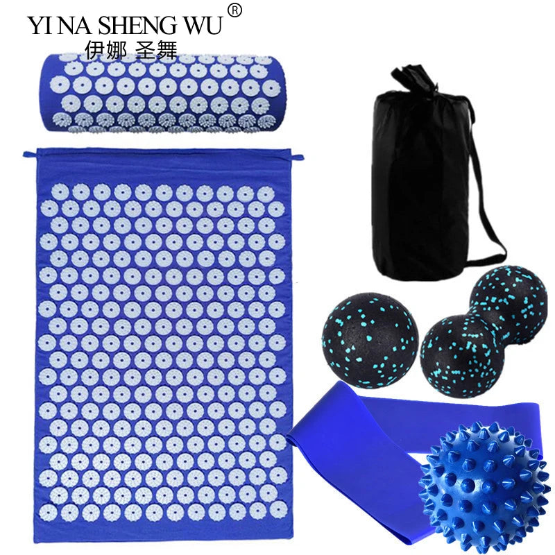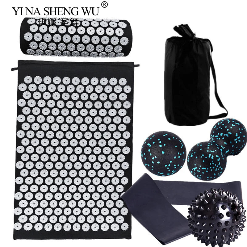 Product size: Acupuncture pad specifications are 65x41x2.5cm, pillow is 39x15x10cm, hardness puncture ball diameter 6.5cm, comfort ball diameter 8cm, peanut ball diameter 8cm, length 16cm, latex elastic ring tension 15LBS