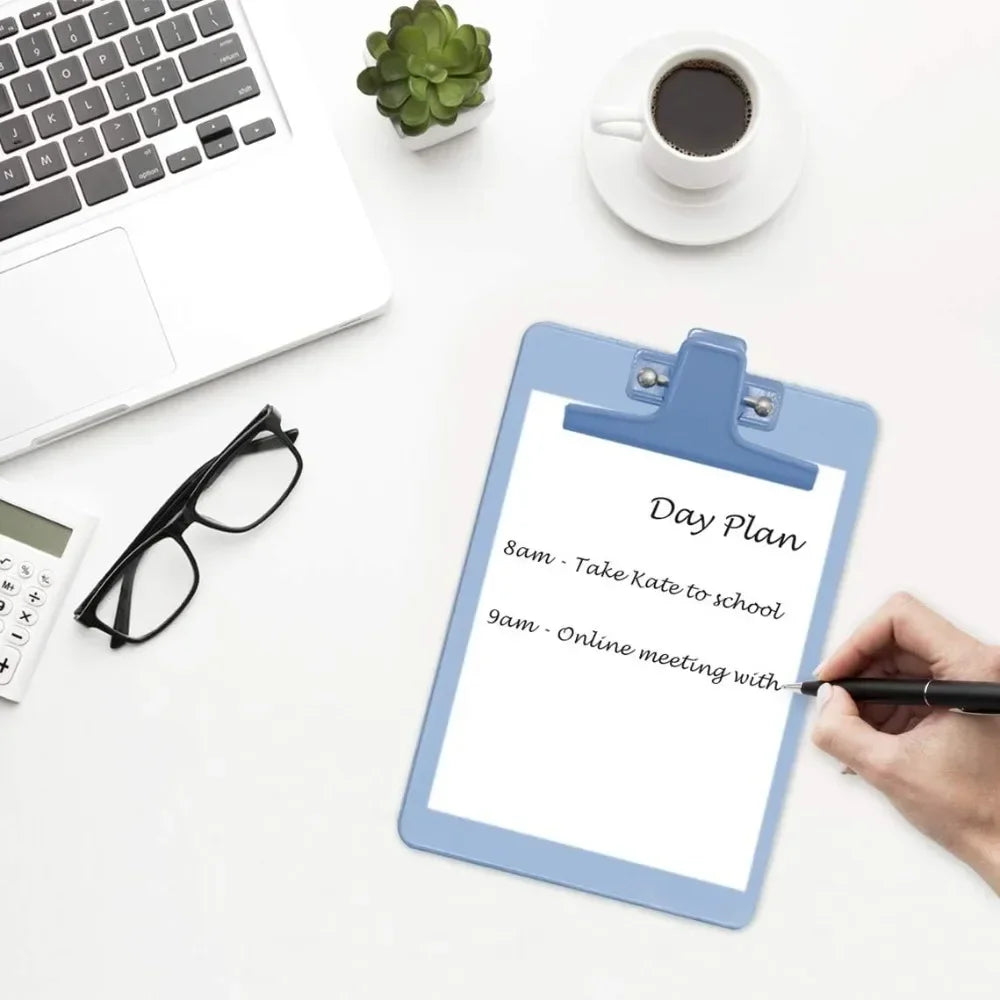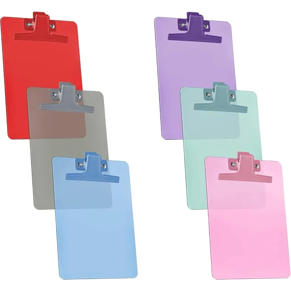 Stay organized on the go or at your desk with this 6-pack of A5-size clipboards, each measuring 9 1/4" x 6 1/3". Crafted from sturdy plastic with a strong metal clip, these lightweight clipboards securely hold your notes, forms, or checklists. Great for students, teachers, office staff, and creatives. The vibrant assorted colors add a fun, functional pop to your workspace!
