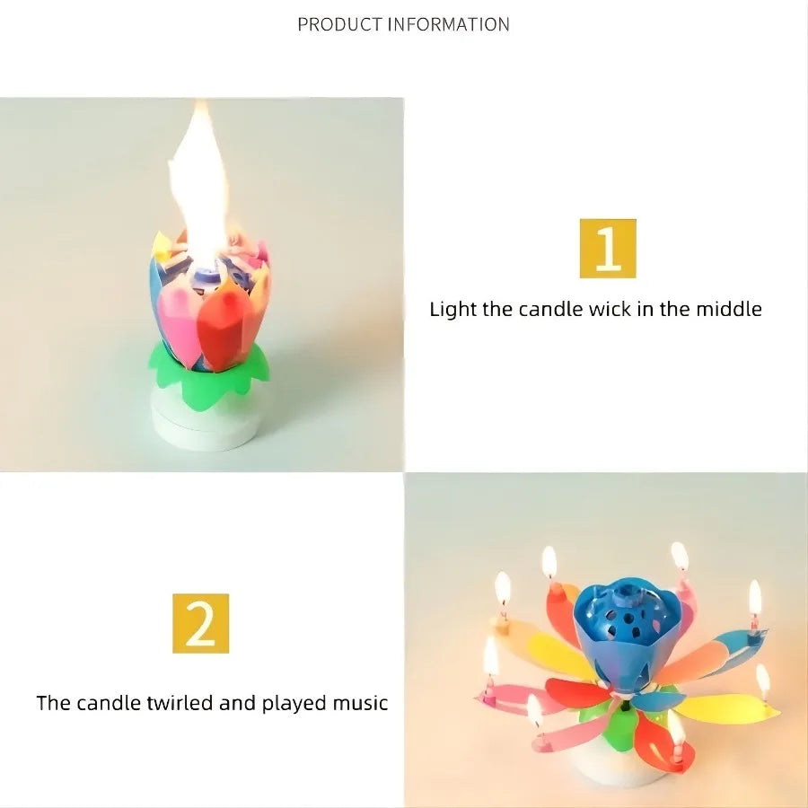 Rotating Lotus Musical Birthday Candle – Singing Flower Cake Topper with Sparkling Display