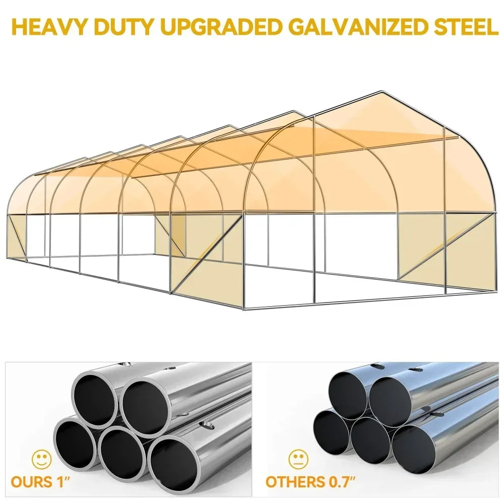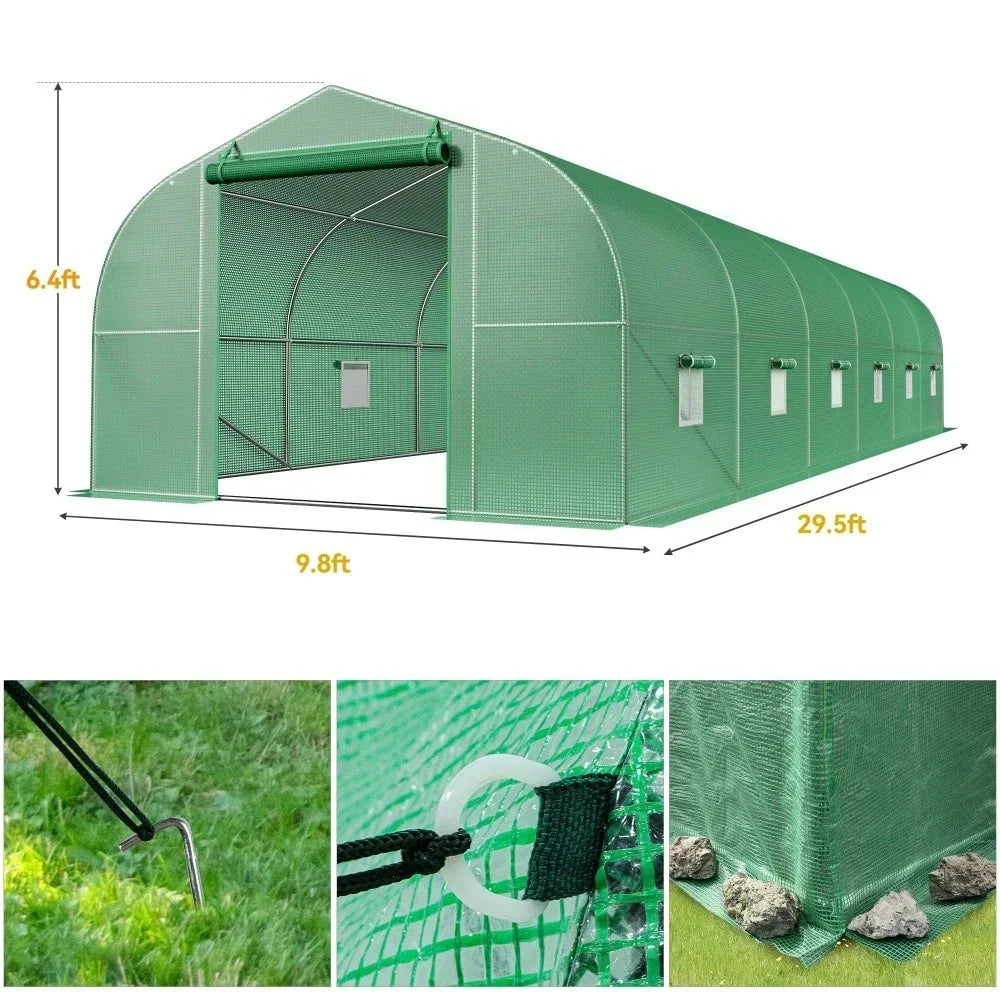 Grow more, season after season. This spacious 30x10 ft walk-in greenhouse features a sturdy galvanized steel frame, 7 crossbars for extra stability, and zippered doors for easy access. Create the perfect environment for thriving plants, rain or shine.