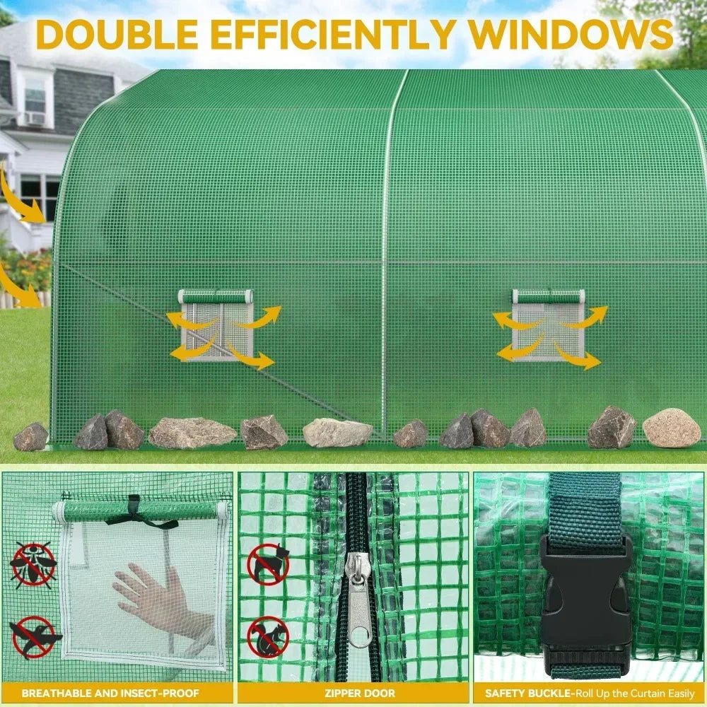- WALK-IN TUNNEL GREENHOUSES: 12 double screen windows on both sides to increase air circulation, better protect your plants, equipped with drawstrings and ground pegs to effectively fix the outdoor greenhouse, We highly advised you must install the ground pegs or heavy stones to fix the greenhouse