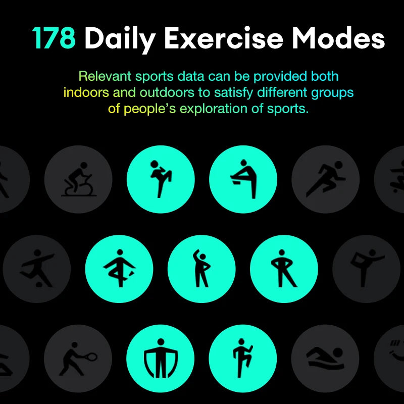 178+ Sports Modes: From swimming (IP68 waterproof) to yoga, automatically recognizes activities and records data.