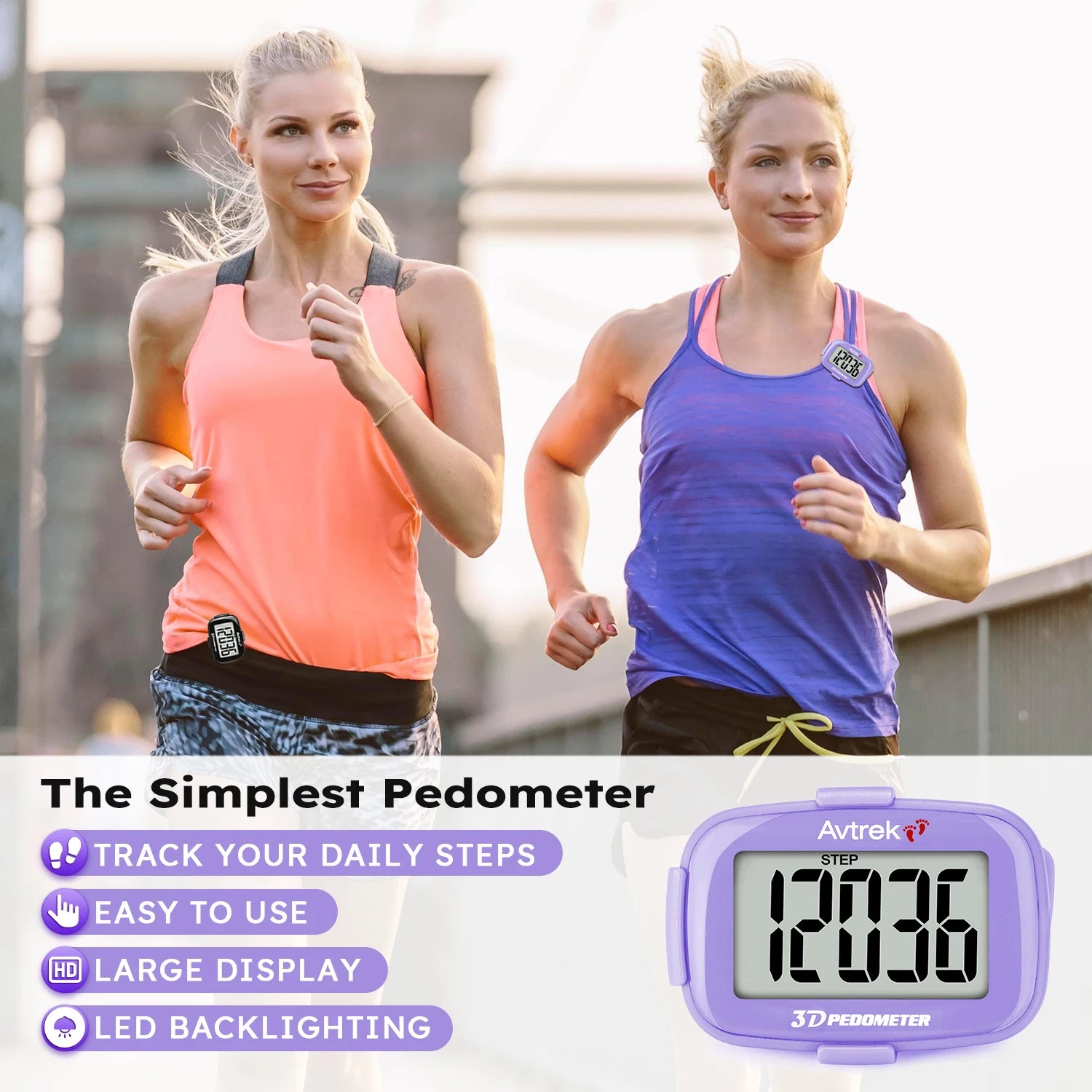 Stay motivated and track every step with the Avtrek Portable 3D Digital Pedometer – your pocket-sized fitness companion. Designed for simplicity and accuracy, this mini step counter uses advanced 3D tri-axis sensor technology to provide reliable step tracking whether it's in your pocket, bag, or clipped to your waist.