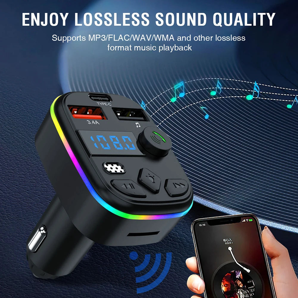 FM Transmitter Bluetooth-Compatible 5.3 Support TF Card U Disk Car Charger Dual USB Type C Car FM Transmitter MP3 Player Adapter