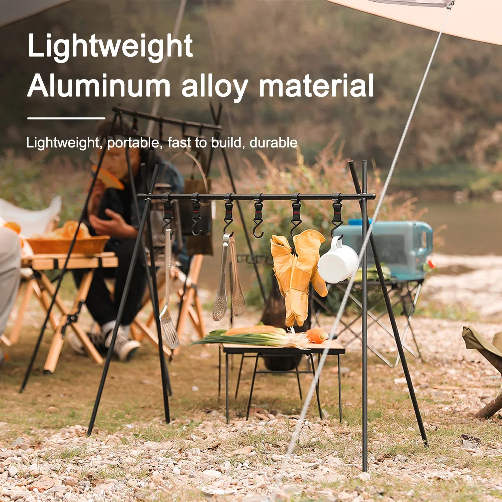 Lightweight Aluminum Camping Triangle Rack – Foldable Storage Stand with Hooks for Picnic, BBQ & Hiking