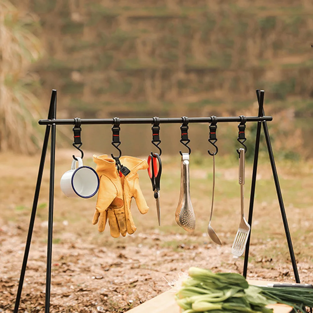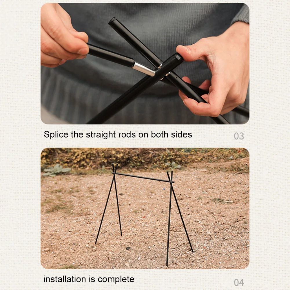 Stay organized outdoors with this portable triangle rack. Crafted from lightweight aluminum and designed to fold flat, it’s perfect for hanging cookware, bags, or tools while camping, barbecuing, or hiking. Simple to set up, built to last.