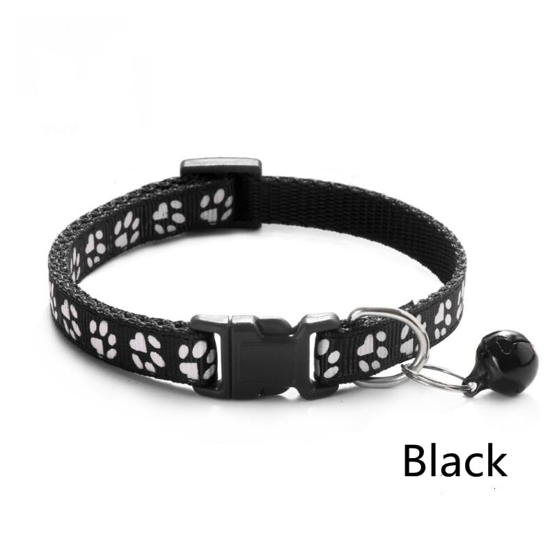 Colorful Cartoon Footprint Cat Accessories: Adjustable Kitten Collar with Safety Bell Ring Necklace