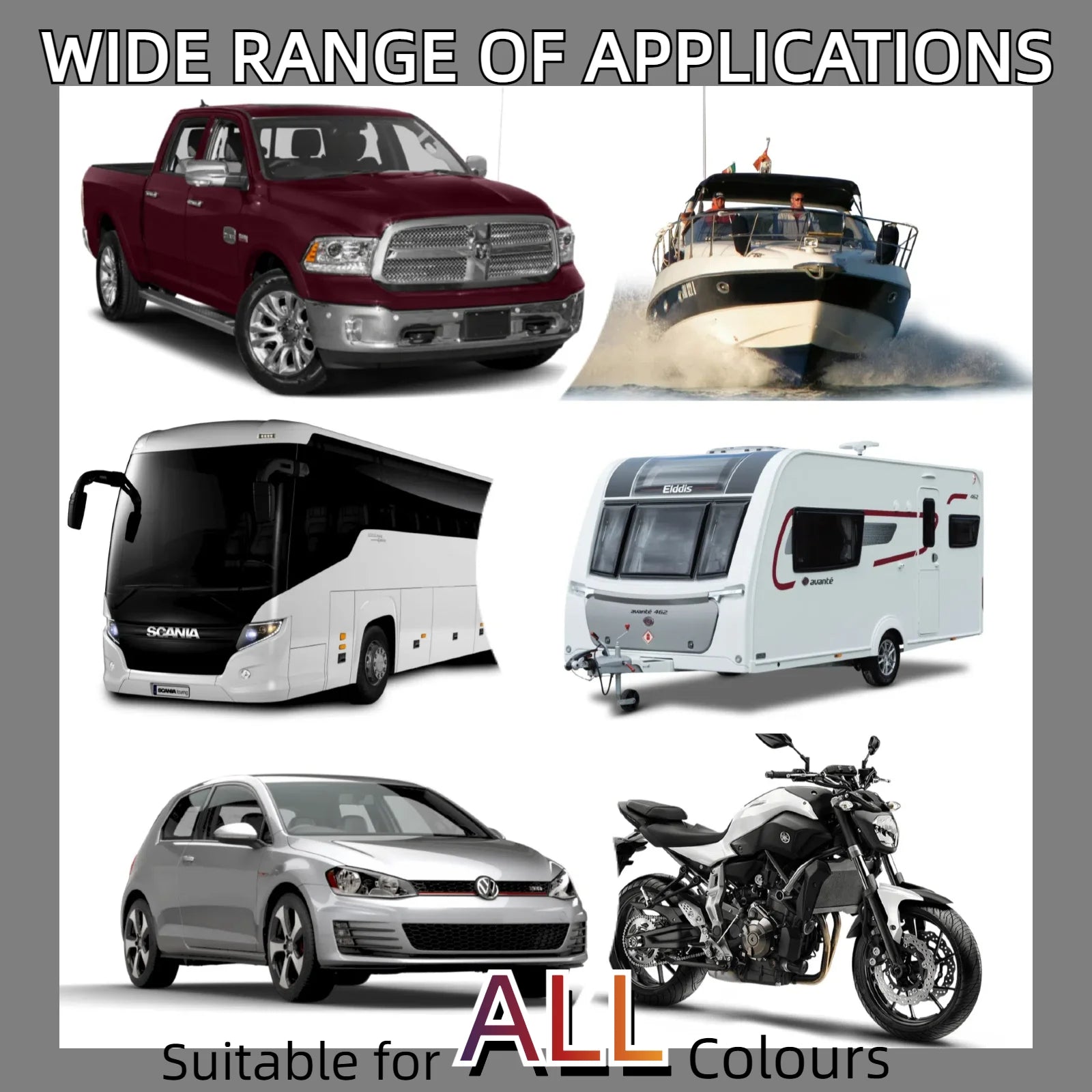 Suitable for all types of surfaces. Apply this spray wax on cars, boats, motorcycles, RVs, ATVs, and more! This wax spray combines surfactants and SiO2 ceramic-coating technology for optimal results.