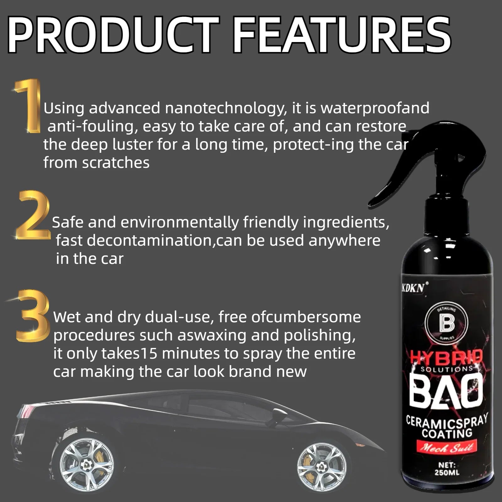 Top-notch items. It equates to an exceptional luster for your vehicles! Our quick ceramic coating also functions as a protector to offer your car a transparent barrier of defense while also delivering an attractive sheen. Our ceramic coating is the finest water-repellent spray for cars on the market!
