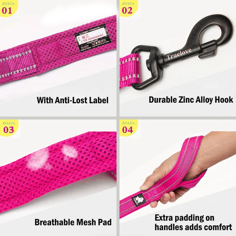 Type: Truelove 110Cm Mesh Padded Dog Leash Pink Durable Reflective