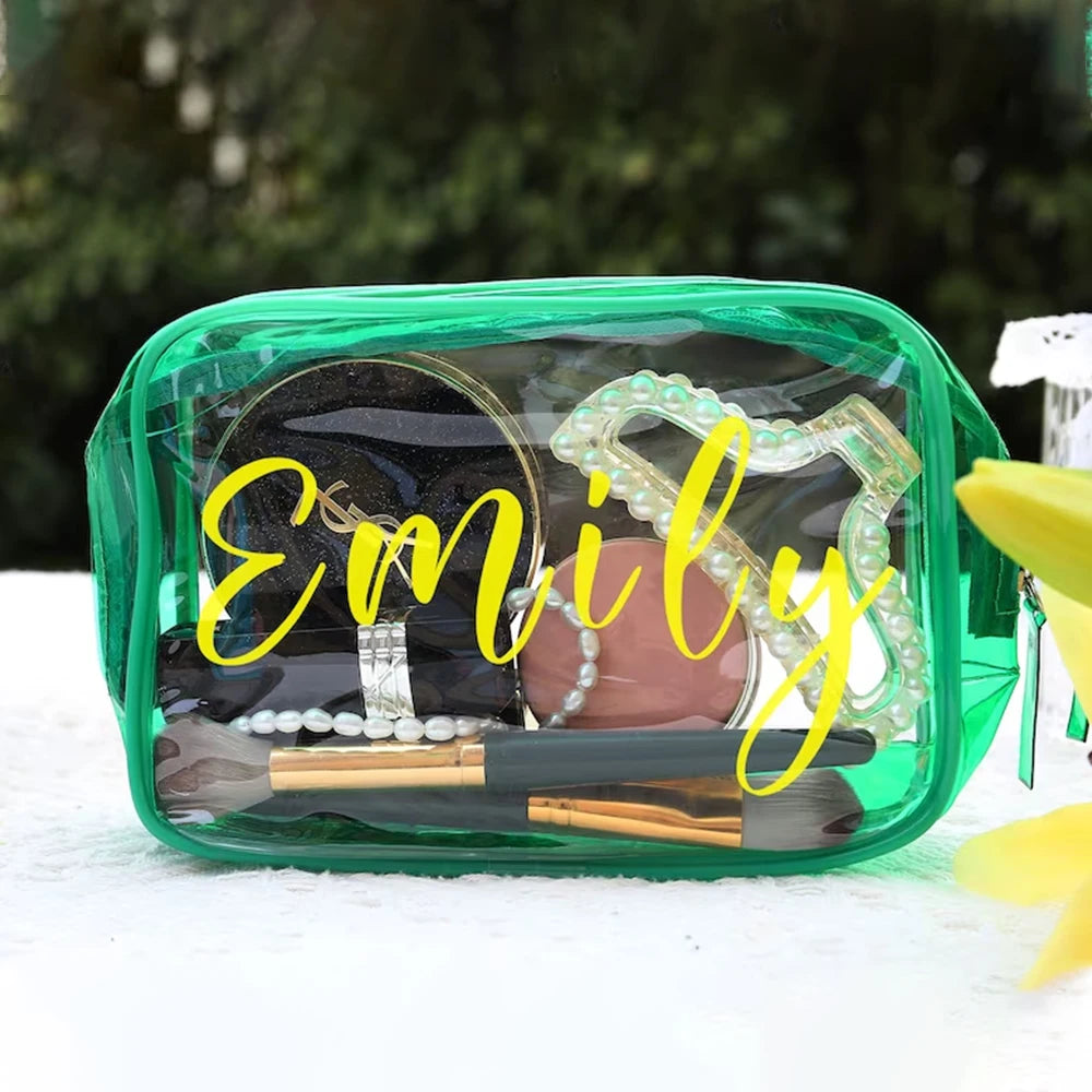 This Personalized Clear Makeup Bag Makes A Great Gift For Bridesmaid Or Wedding Party. It's Also Great For Teens, College Students, Teachers, Dance Teams, And Cheer Squads!