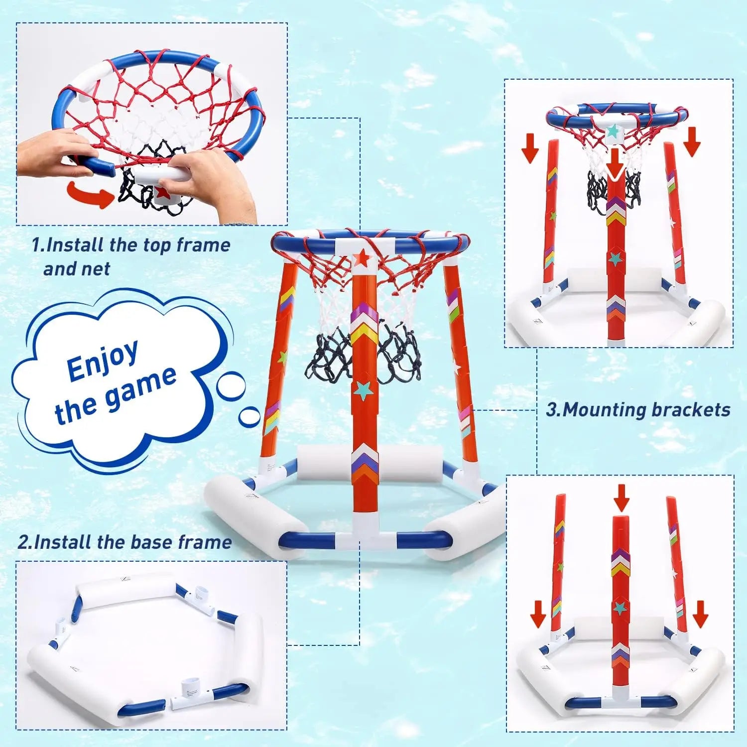 【Easy to Assemble】All pool basketball accessories are included. Our mini basketball hoop set offers detailed installation steps and graphic instructions in the box. Kids can install the swim toy in minutes.