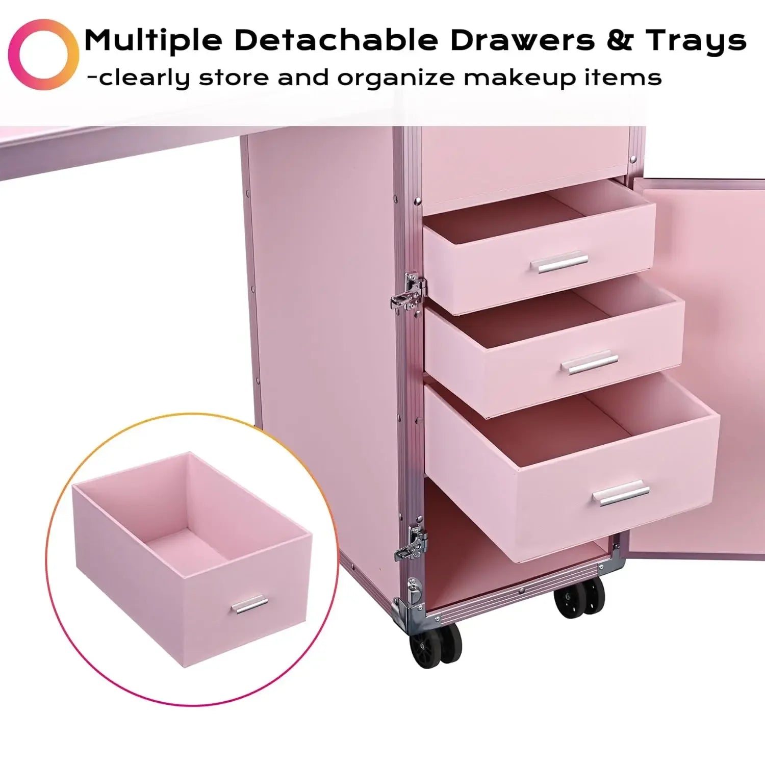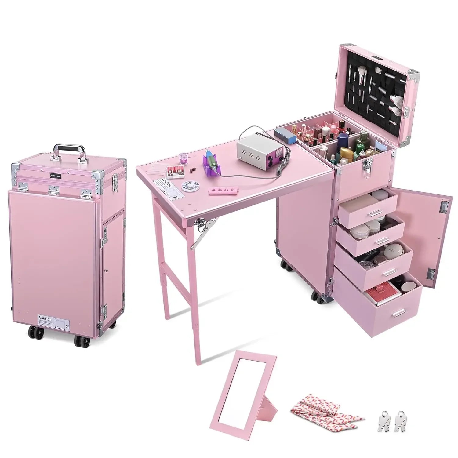 Portable Rolling Manicure Table – Foldable Nail Desk with Travel Case & Cosmetic Trolley Storage Organizer