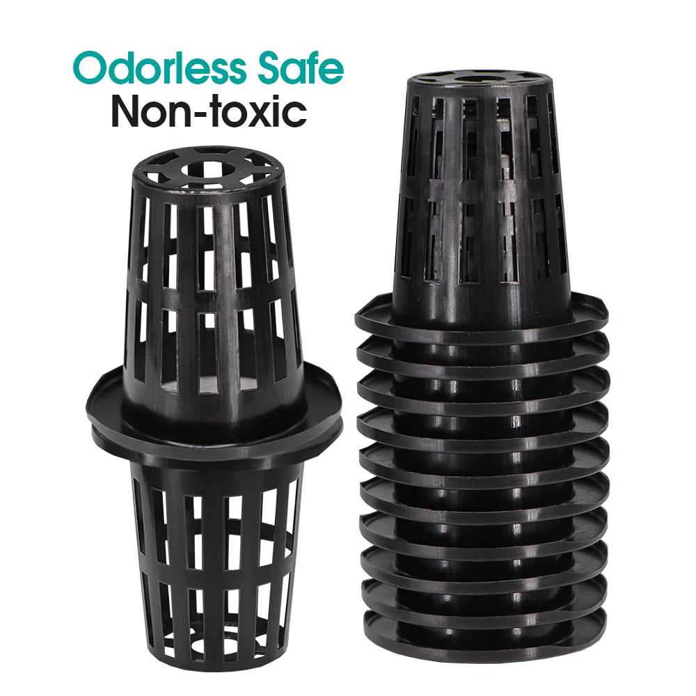 - [SCIENTIFIC DESIGN] - Net pot with holes in the bottom of these cups produce healthy roots with even drainage, which let the roots grow their own way, right down through the pot and out of the sides, allow for bigger, healthier roots.
