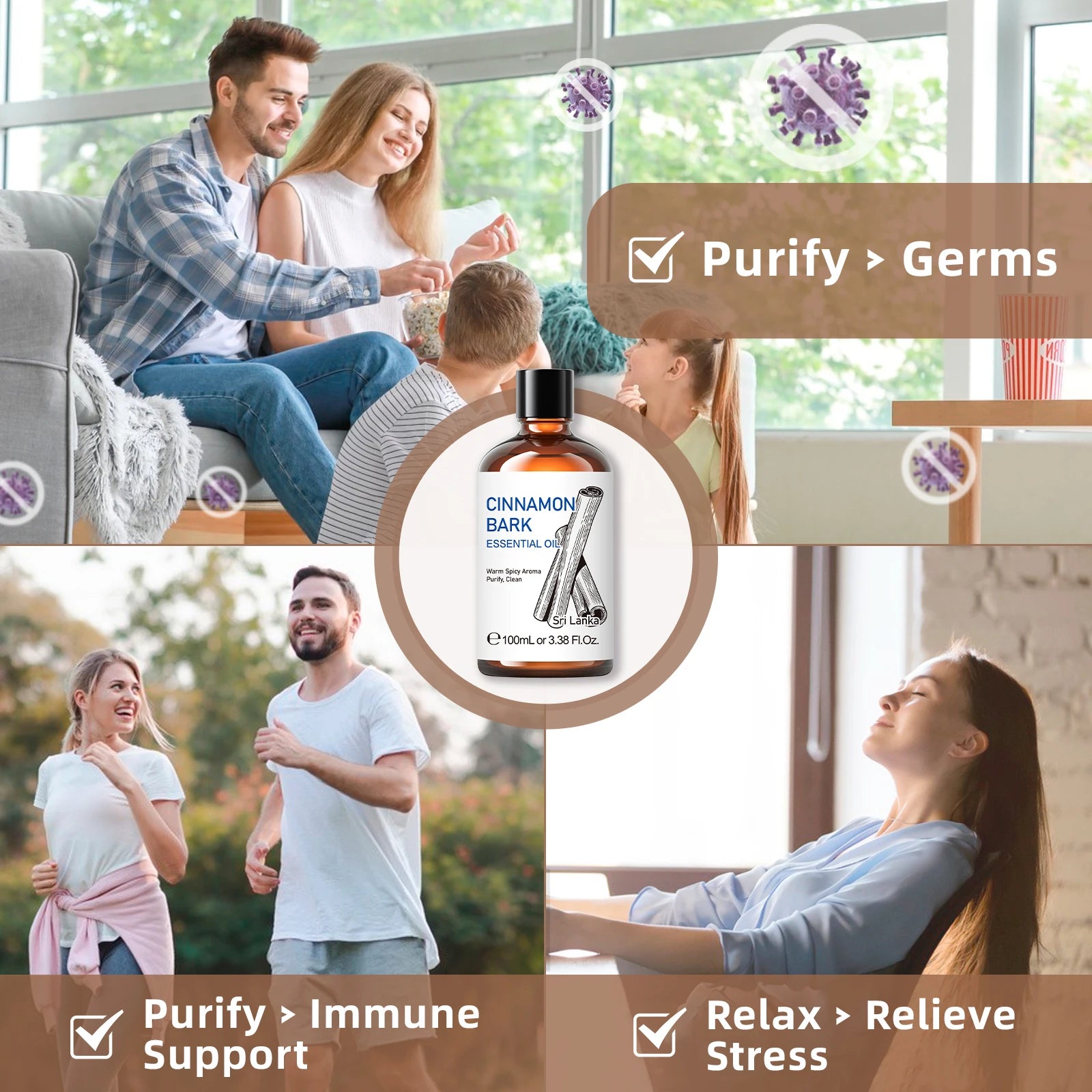 100ml Pure Cinnamon Bark Essential Oil - Natural Aromatherapy for Diffusers, Humidifiers, Massage, and Stress Relief