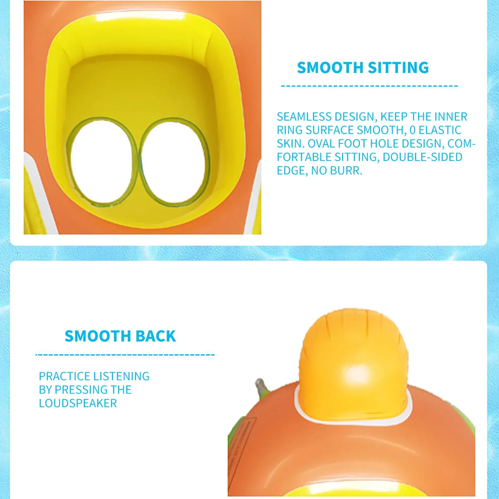 【Safety Material】This baby floats for pool is made of high-qualityPVC material, safe, environmentally friendly, durable, with smooth corners, avoiding scratches on the delicate skin of babies and kids, and friendly to babies.
