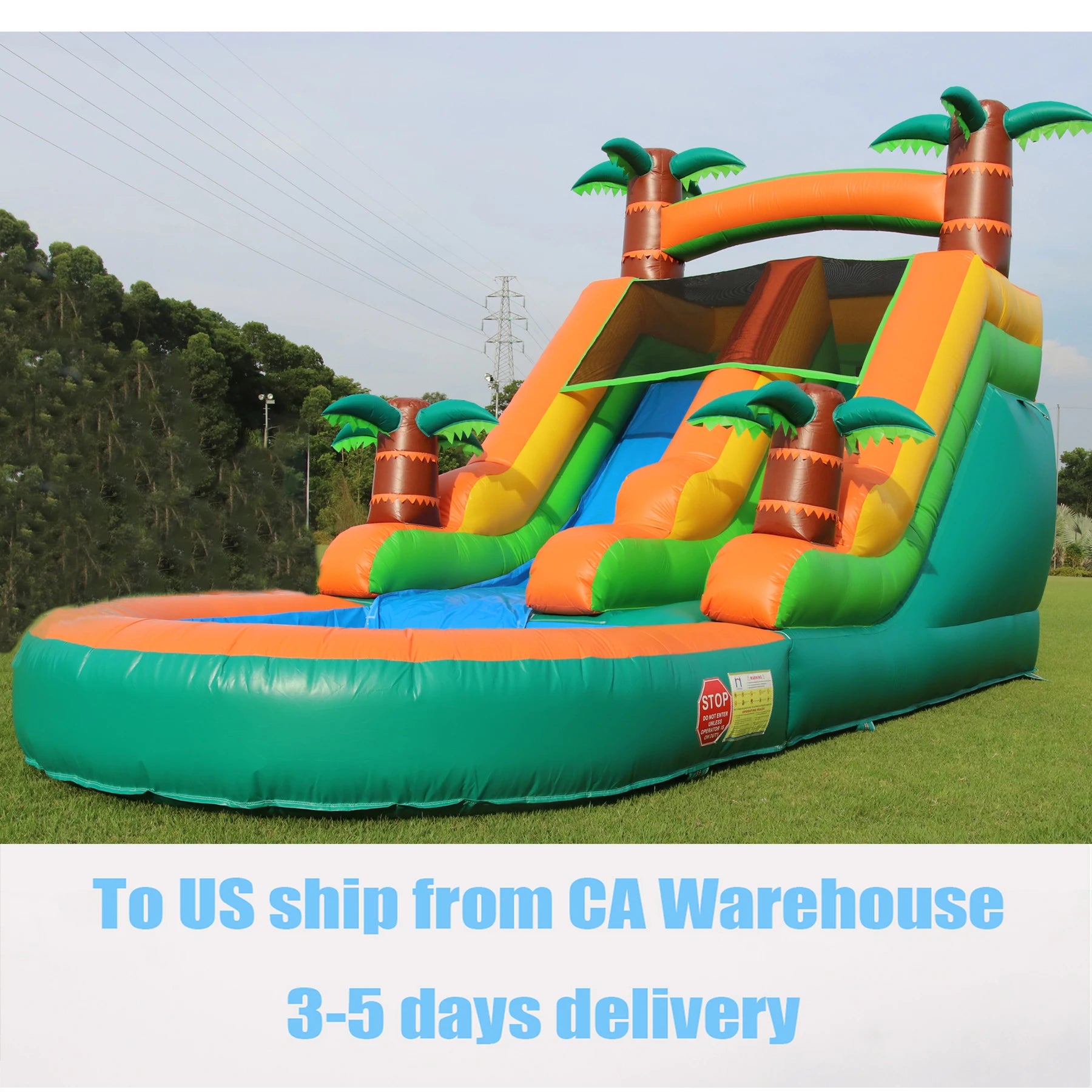 Inflatable Double Water Slide and Bubble Ball Pit: Summer Outdoor Fun Equipment for Kids and Adults
