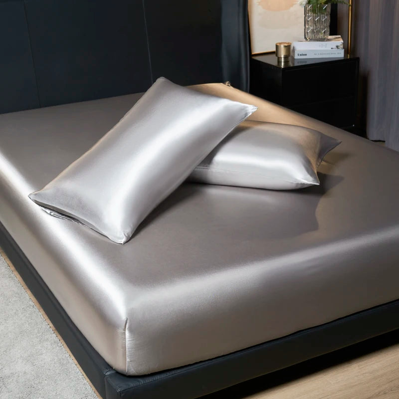 3-Piece Satin Fitted Sheet Set – Luxury Solid Color Bed Cover with Pillowcases & 4-Corner Elastic Fit