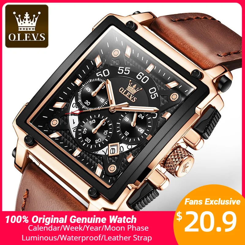 Luxury Men's Waterproof Square Watch: Luminous Quartz Wristwatch with Top Brand Elegance and Fashion