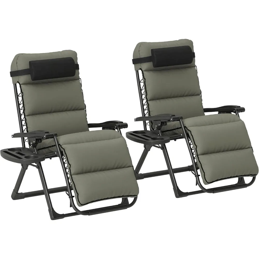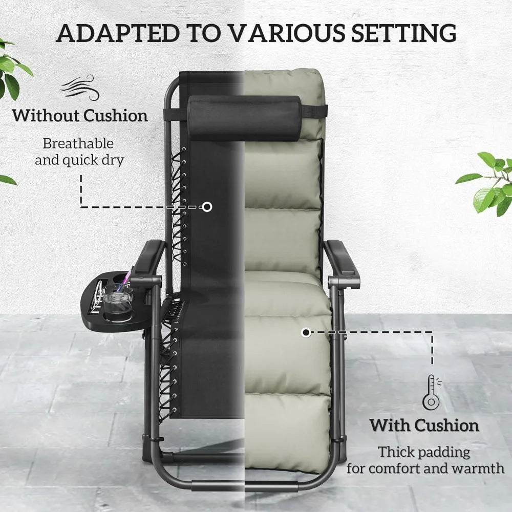 Set of 2 Reclining Zero Gravity Lounge Chairs – Folding Outdoor Relaxation with Removable Cushions