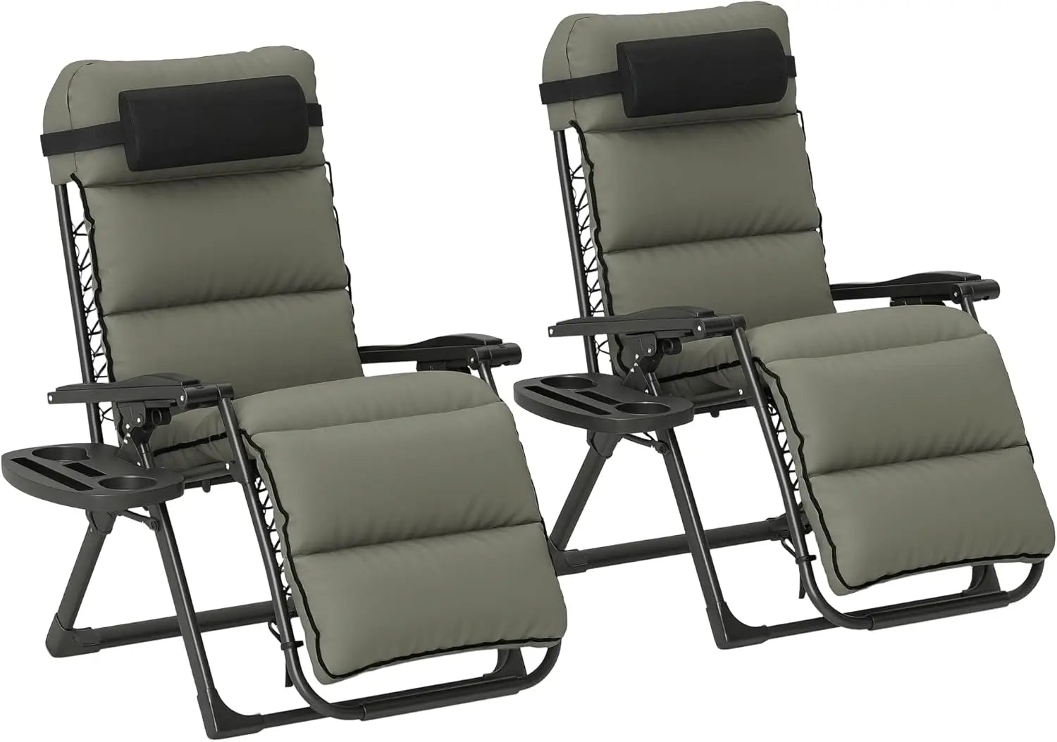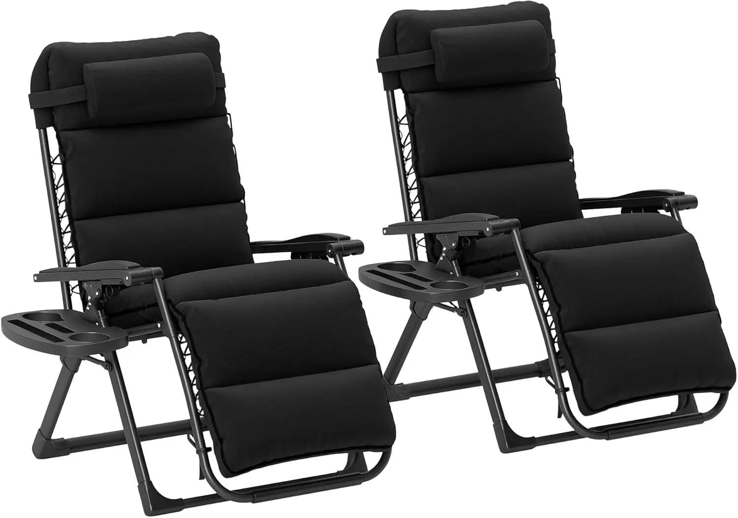 - Lockable Reclining Set: Enjoy personalized relaxation with this padded zero gravity chair set with an easily lockable, adjustable reclining back. Breathable mesh fixed on the frame with double elastic straps for pressure-relieving comfort under the sun