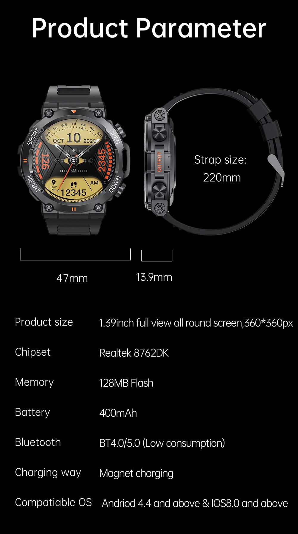 Stay Connected and Active with the MELANDA 1.39-Inch Bluetooth Smartwatch for Men: Compatible with Android and iOS, Sports Fitness Tracker with Heart Monitor and Long Battery Life (400mAh)