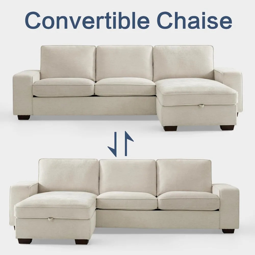 99" Modern Reversible Sectional Sofa with Chaise and Storage – L-Shaped Chenille Fabric Couch for Living Room