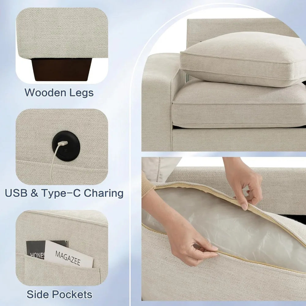 - 【ENDURING CHENILLE FABRIC 】Crafted with durable, eco-friendly , breathable Chenille fabric that is non-pilling and won't stain, this sofa's high-density weave resists even pet scratches, ensuring long-lasting use. This modular couch is ideal for cozy nights in and family gatherings in your living room.