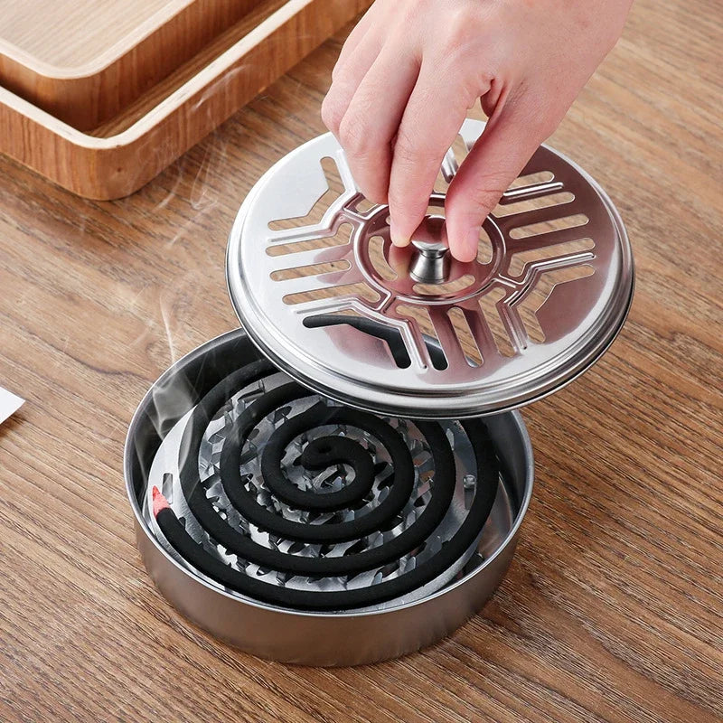 Mosquito Coil Holder with Lid – Round Metal Tray | Easy-to-Clean Mosquito Coil Burner for Indoor & Outdoor Use
