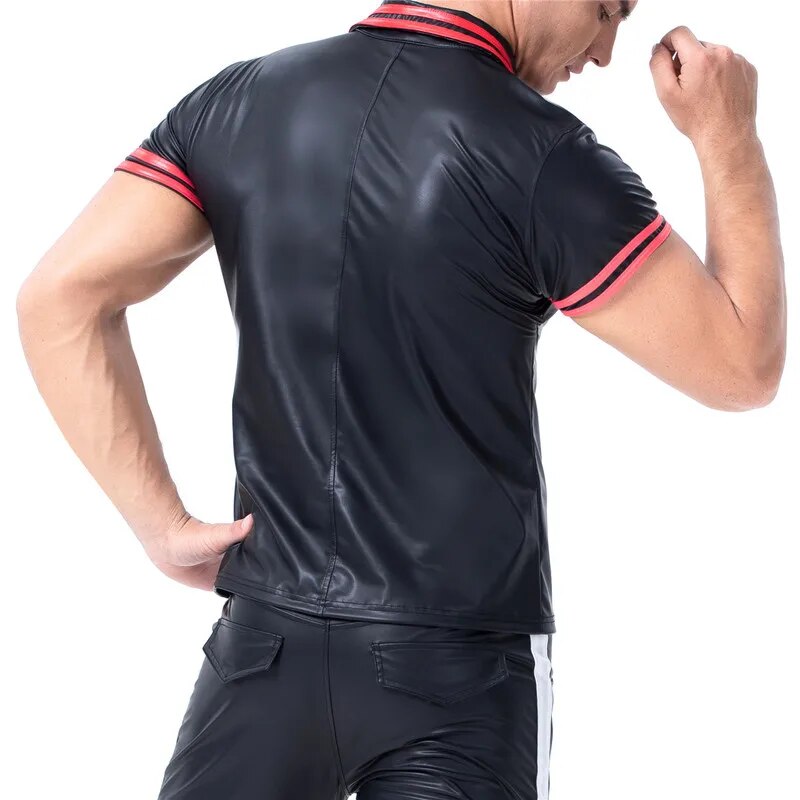 Plus Size Men's T-shirts Faux Leather Short Sleeve Shirts Tee Sports Fitness Body Shapers Streetwear Undershirts Casual Outfits