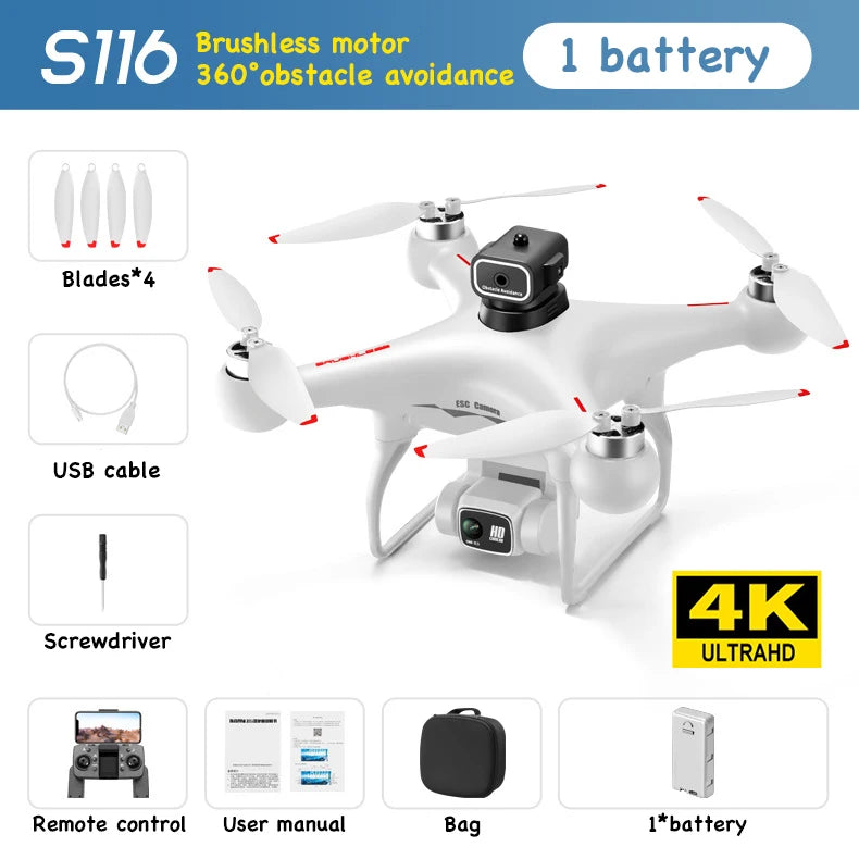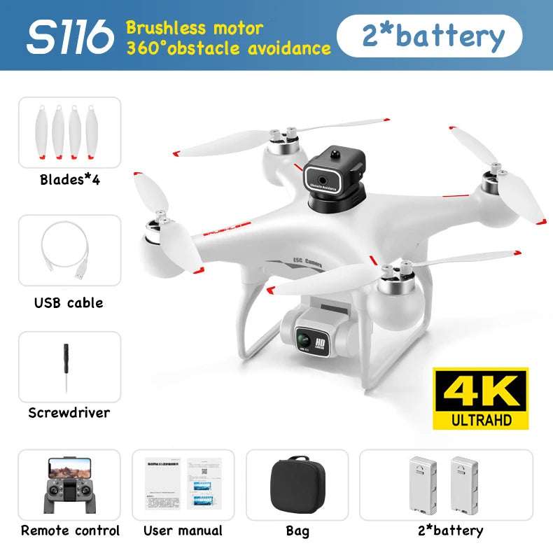 8K GPS Professional Drone with Dual 4K Cameras | S116 Max Brushless Motor, Obstacle Avoidance, & Long-Life Battery