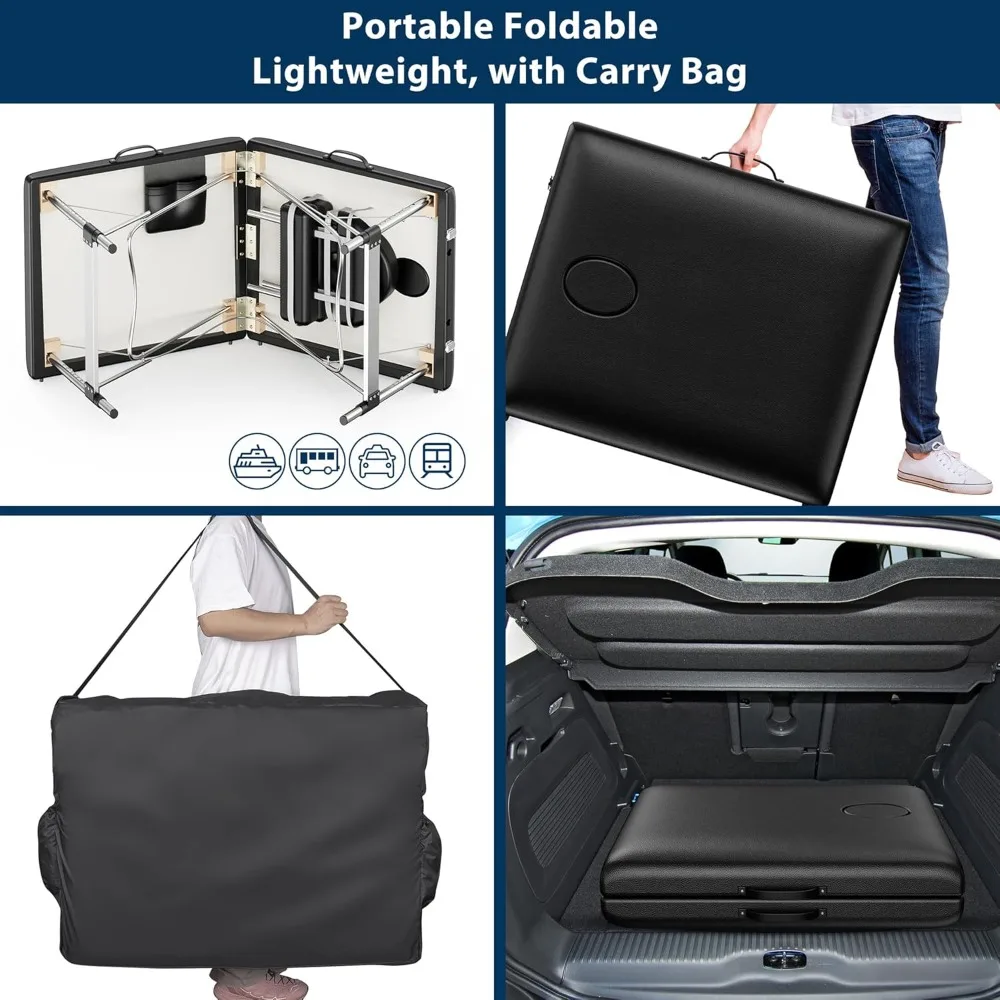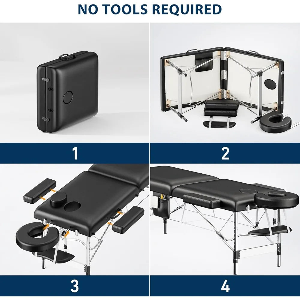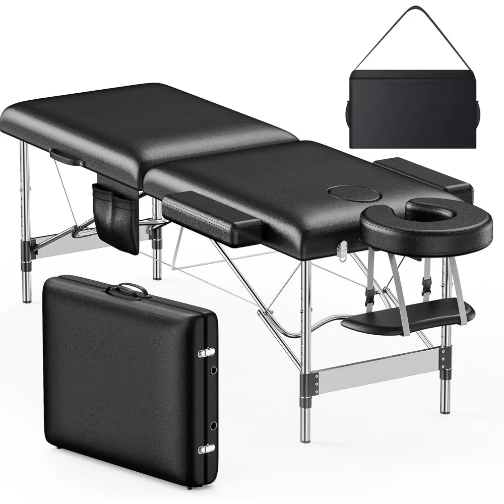 2-Fold Portable Massage Table with Adjustable Height – Lightweight Aluminum Frame & Side Pocket for Spa, Facial, Lash Bed Use