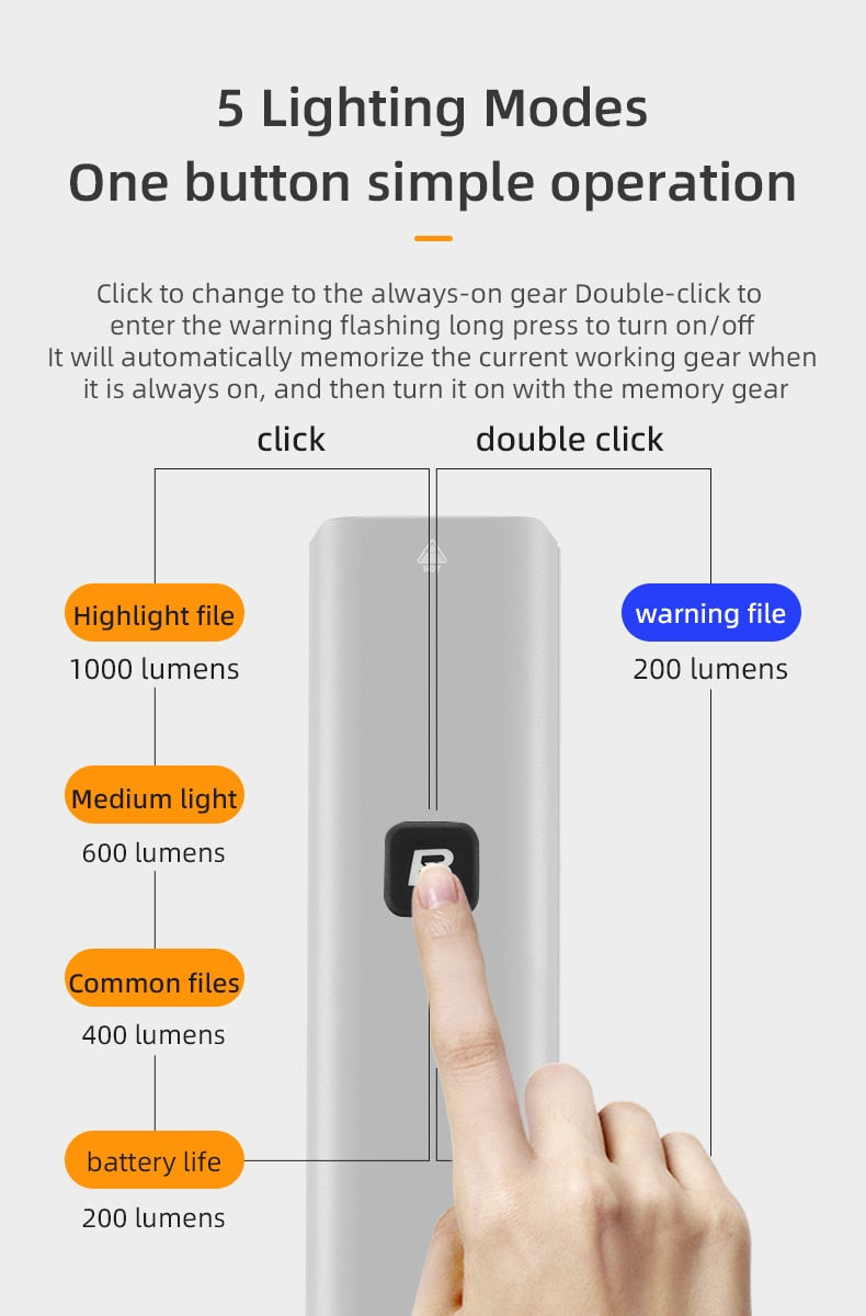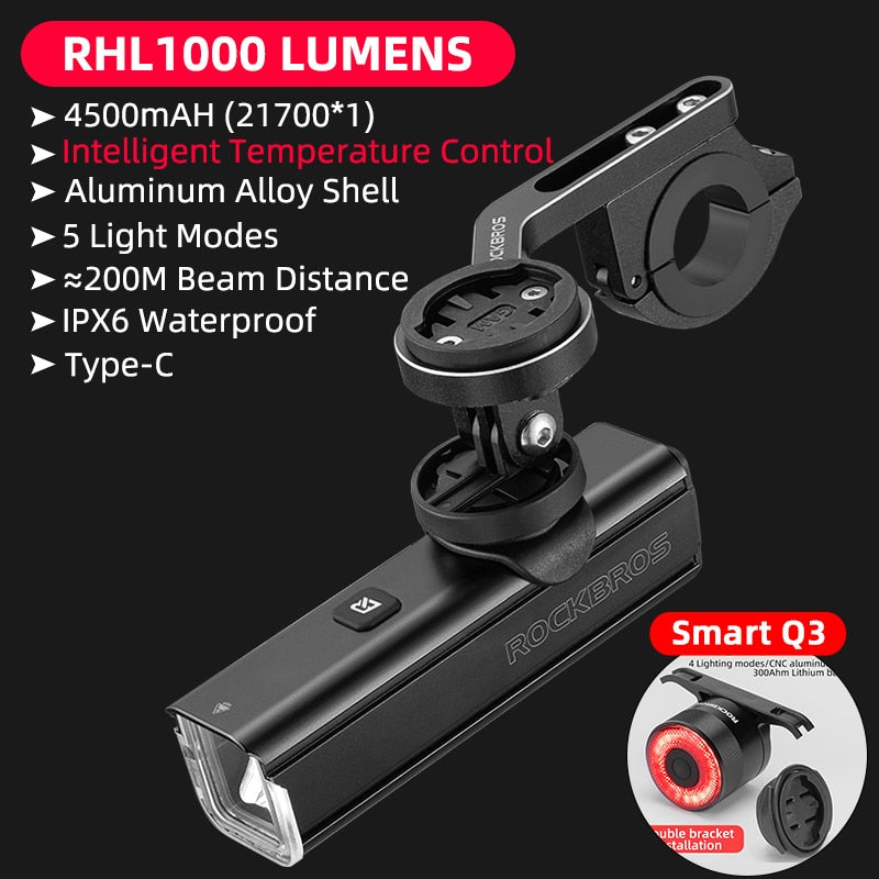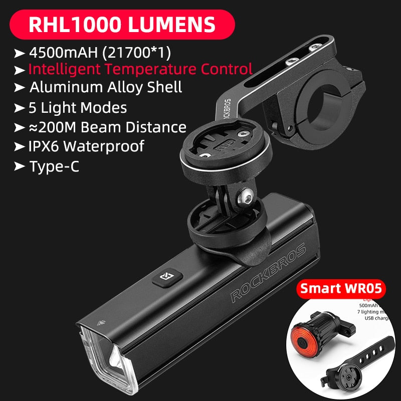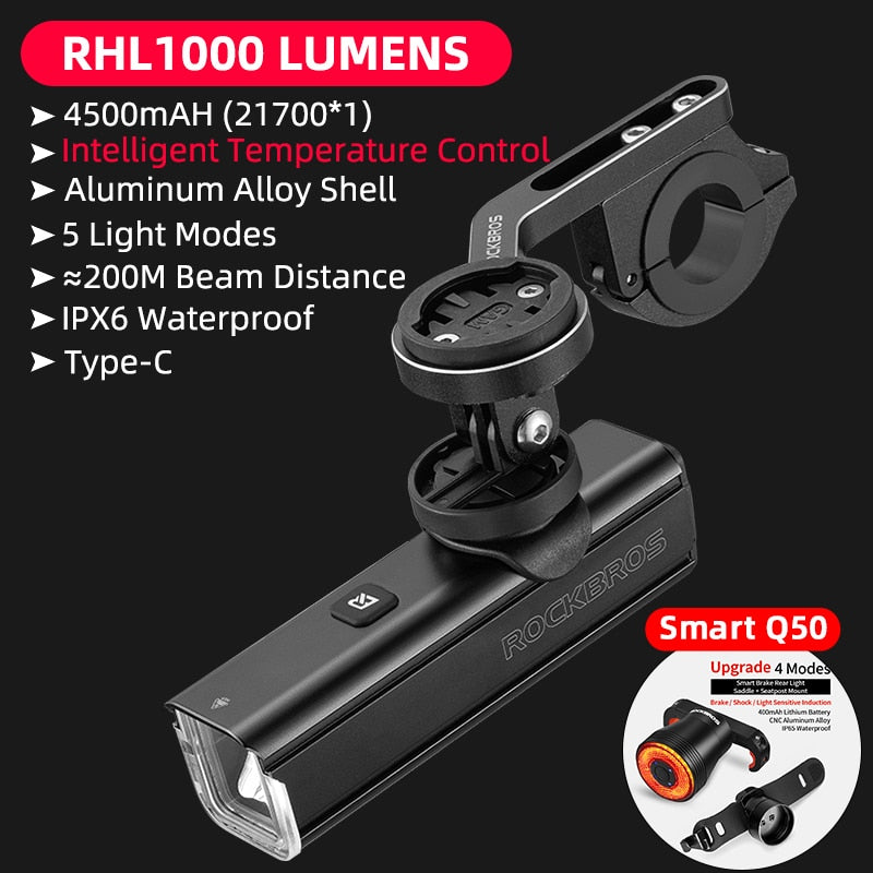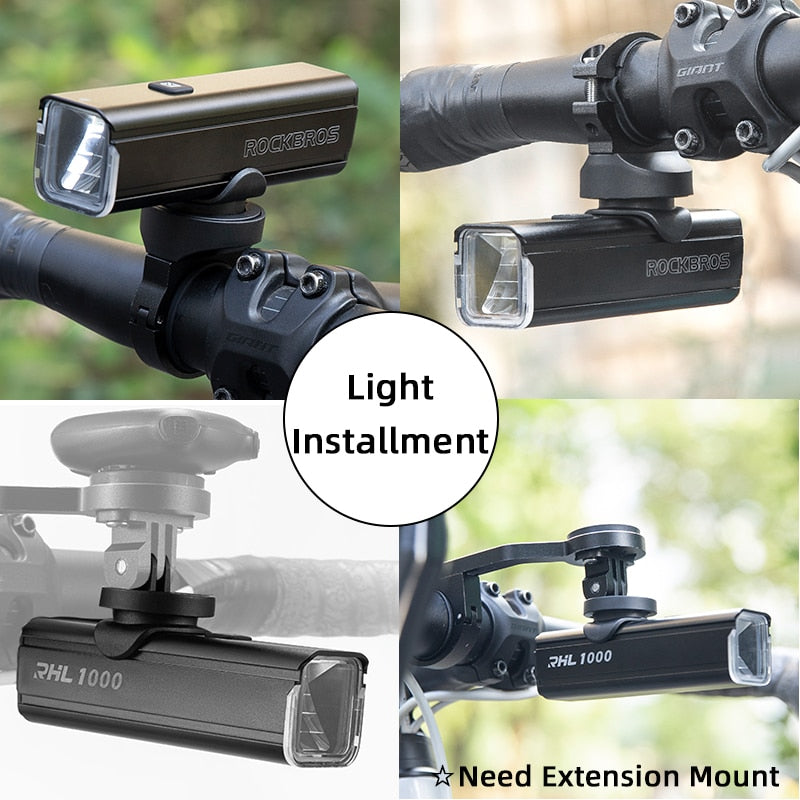 Illuminate Your Ride with ROCKBROS 1000LM Type-C Rechargeable Bicycle Front Light – Powerful LED, 4500mAh Battery, Waterproof Design