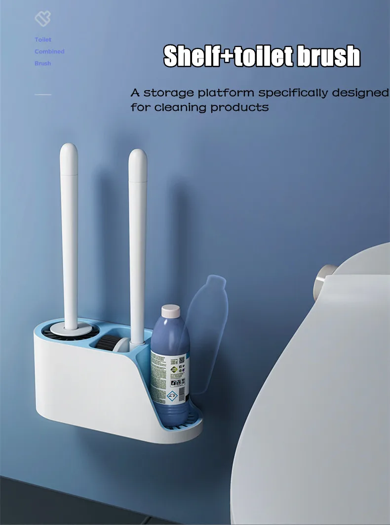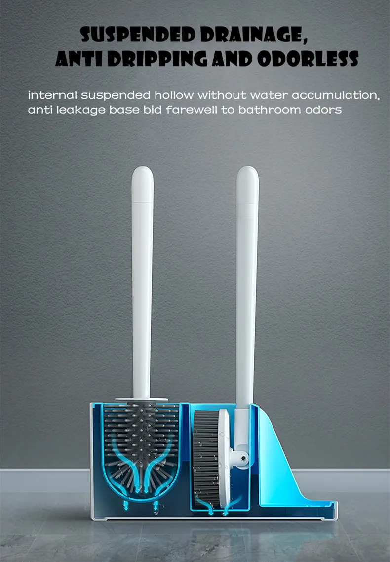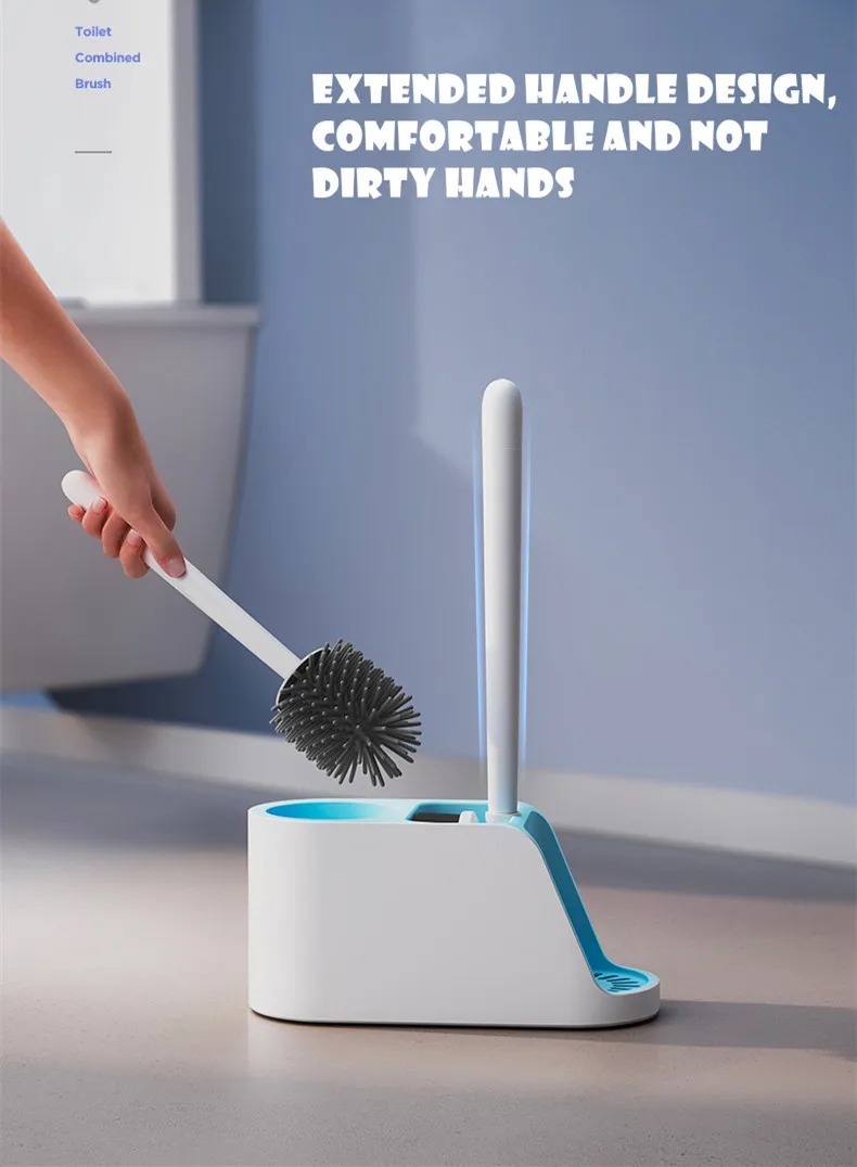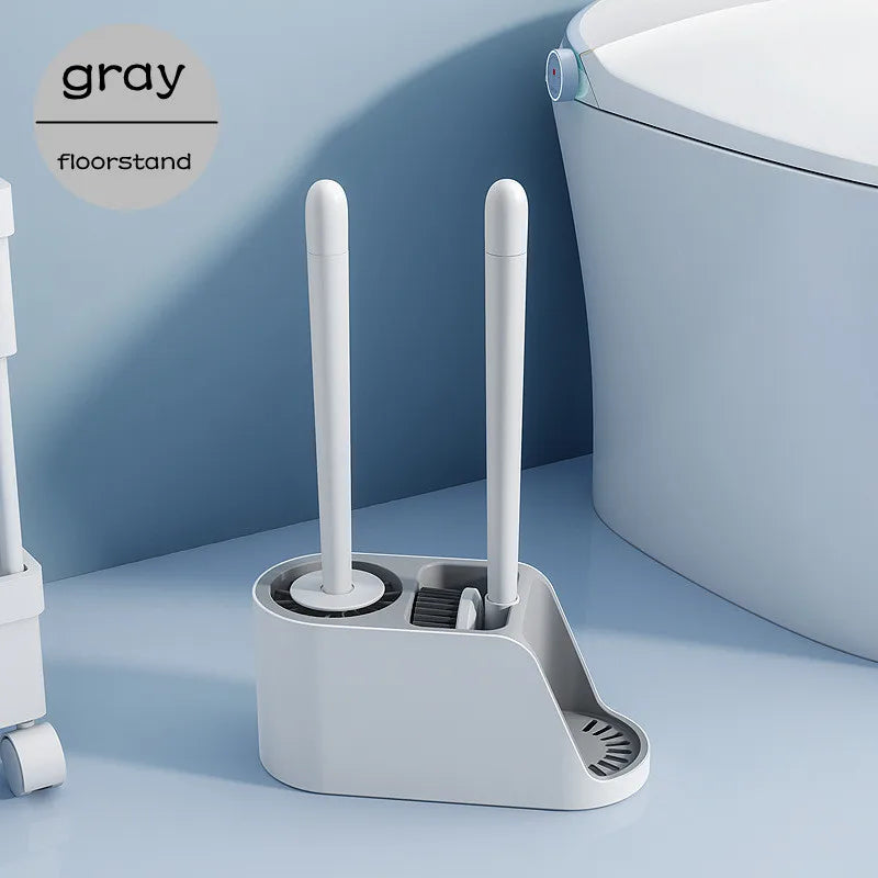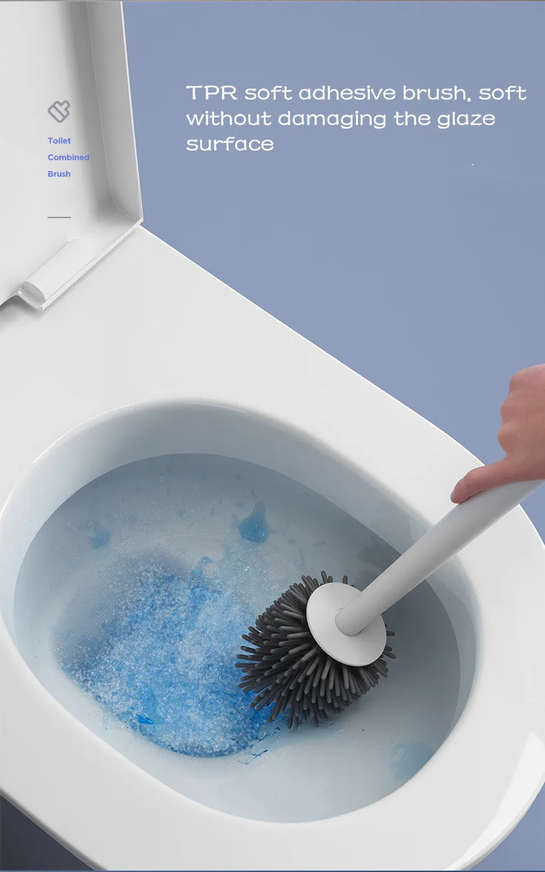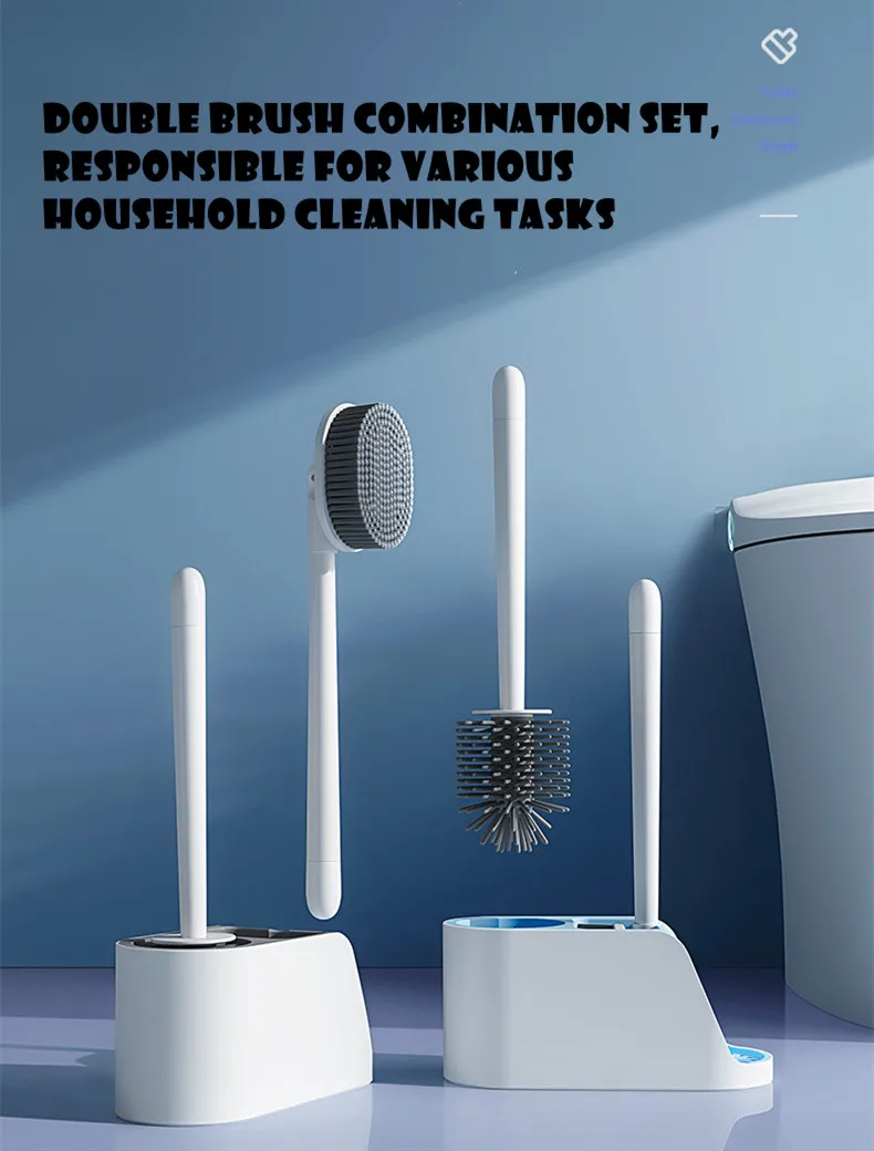 3-in-1 Silicone Toilet Brush Set with Wall & Floor Stand – Sleek, Space-Saving Cleaning Solution