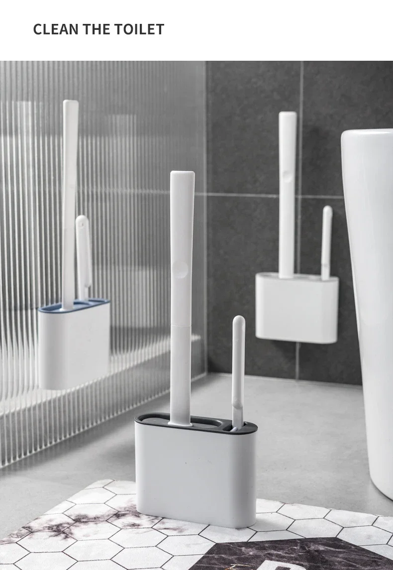 Upgrade your bathroom cleaning routine with this modern silicone toilet brush. Featuring a long, flexible handle and quick-drying ventilation holder, it reaches every corner with ease while staying hygienic and mess-free. Wall-mount design saves space and adds a clean look to any bathroom setup.