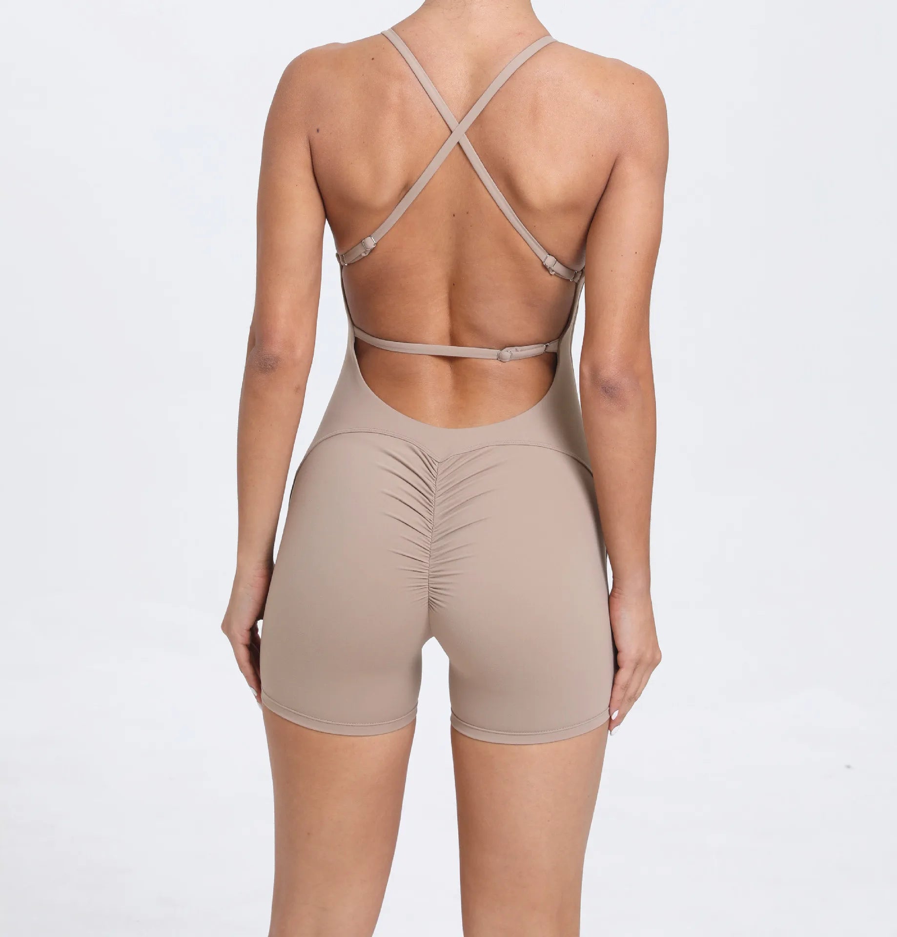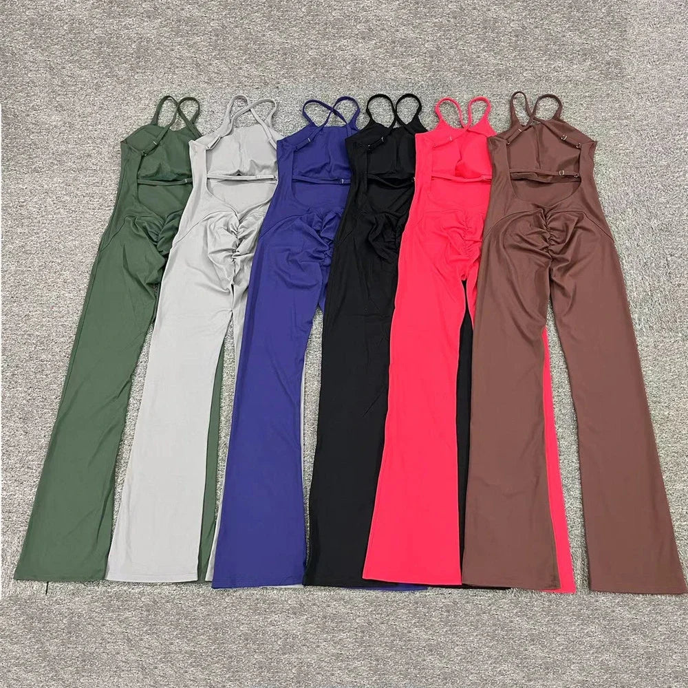 One-Piece Cross-Back Bodycon Yoga Jumpsuit – Women’s Fitness Legging Gym Outfit for Activewear & Workouts