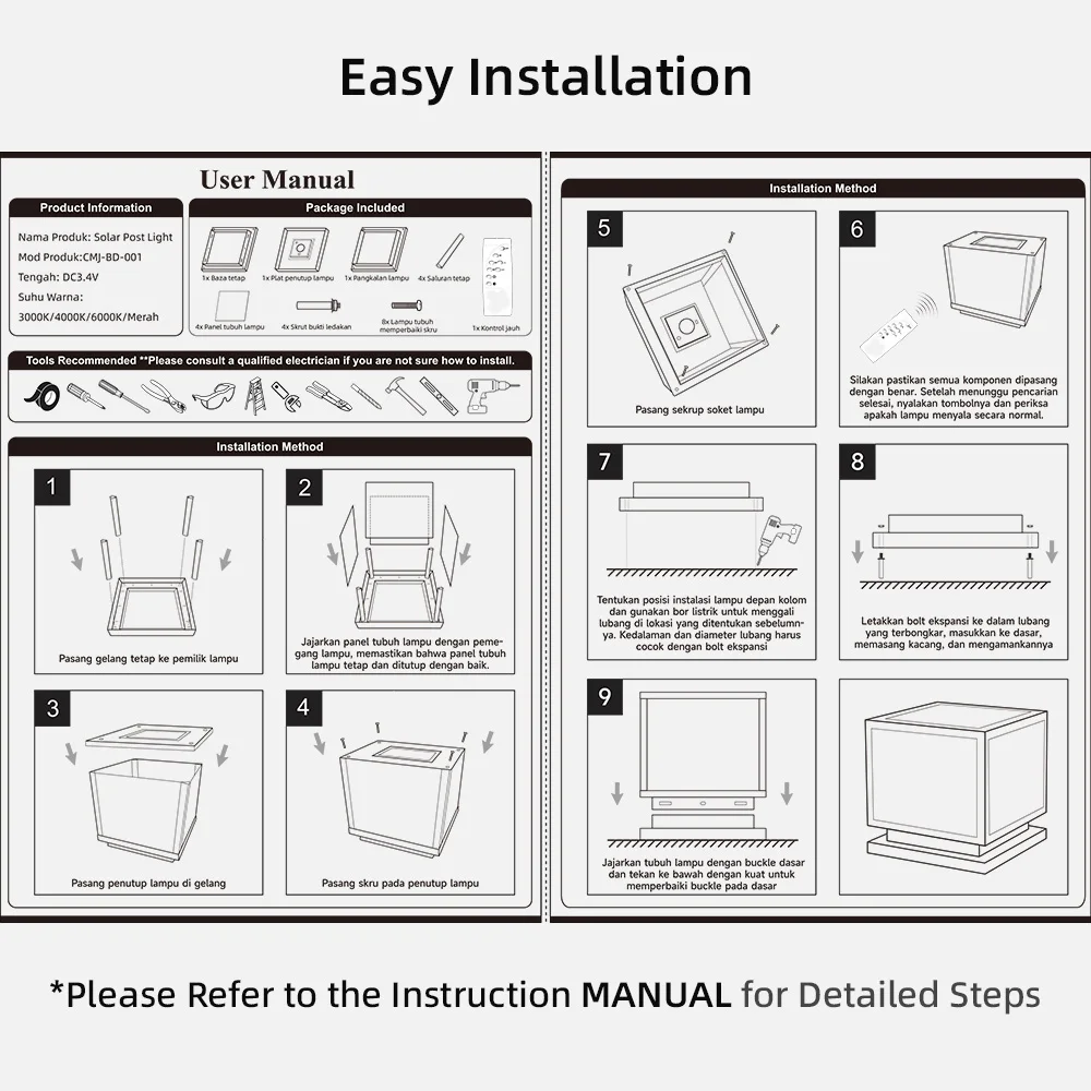 The solar column light comes with a user-friendly installation guide, ensuring a hassle-free setup process. Simply place it in a sunny spot, and it's ready to provide both style and functionality to your outdoor space.